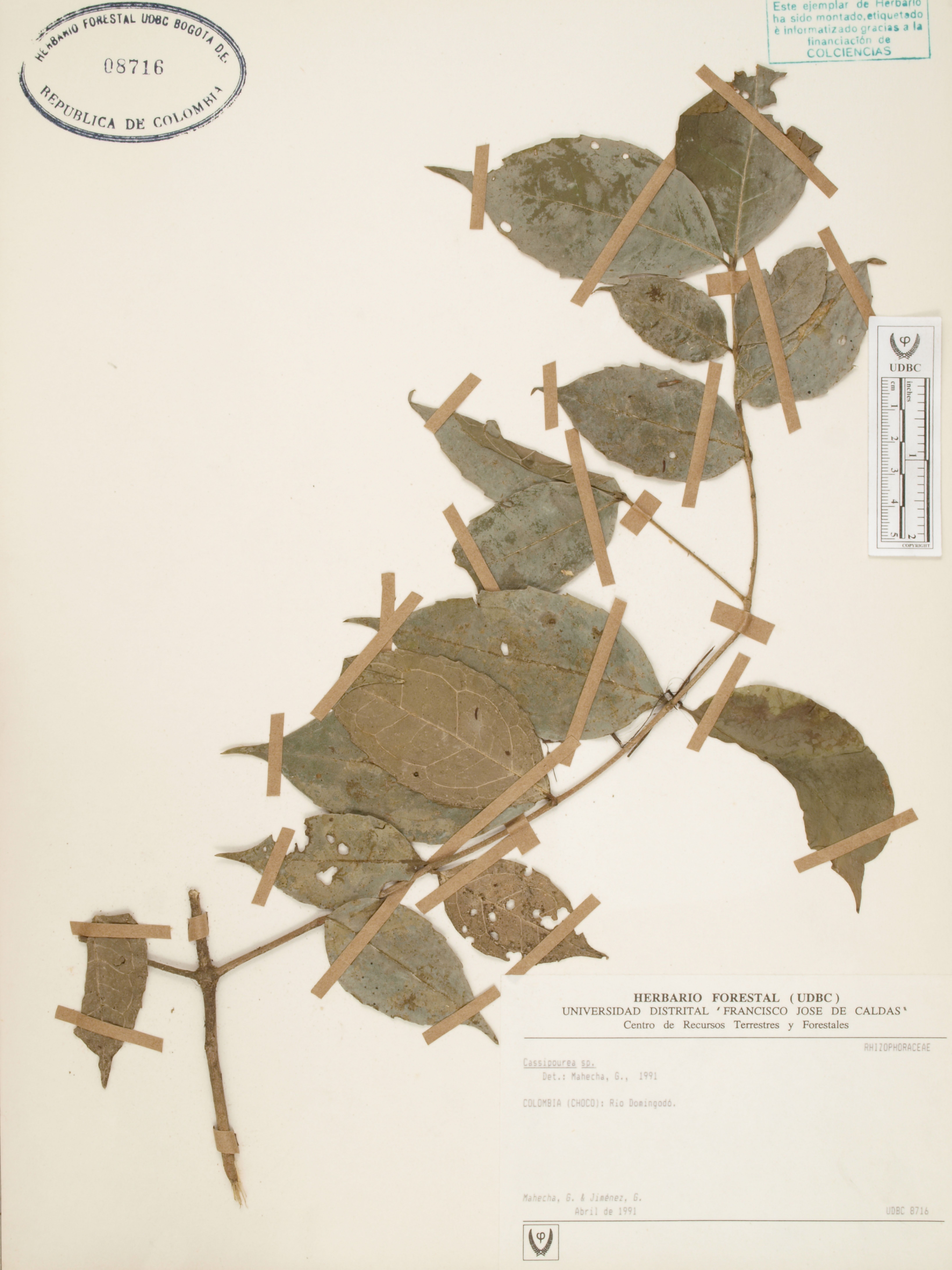 Fotografía del ejemplar Mahecha, G., determinado como Cassipourea sp.
