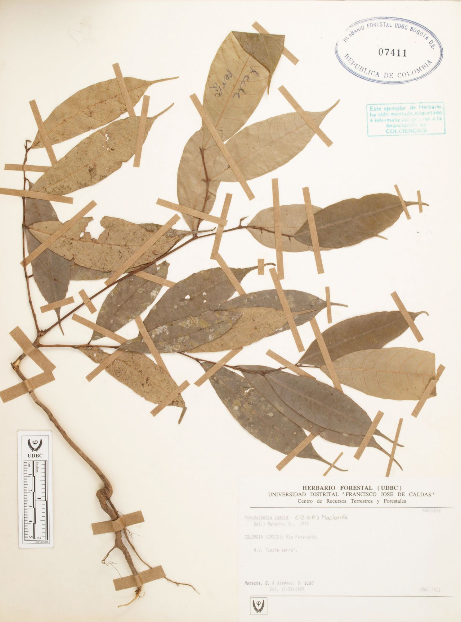 Fotografía del ejemplar Mahecha, G. 6160, determinado como Pseudolmedia laevis en el año 1990