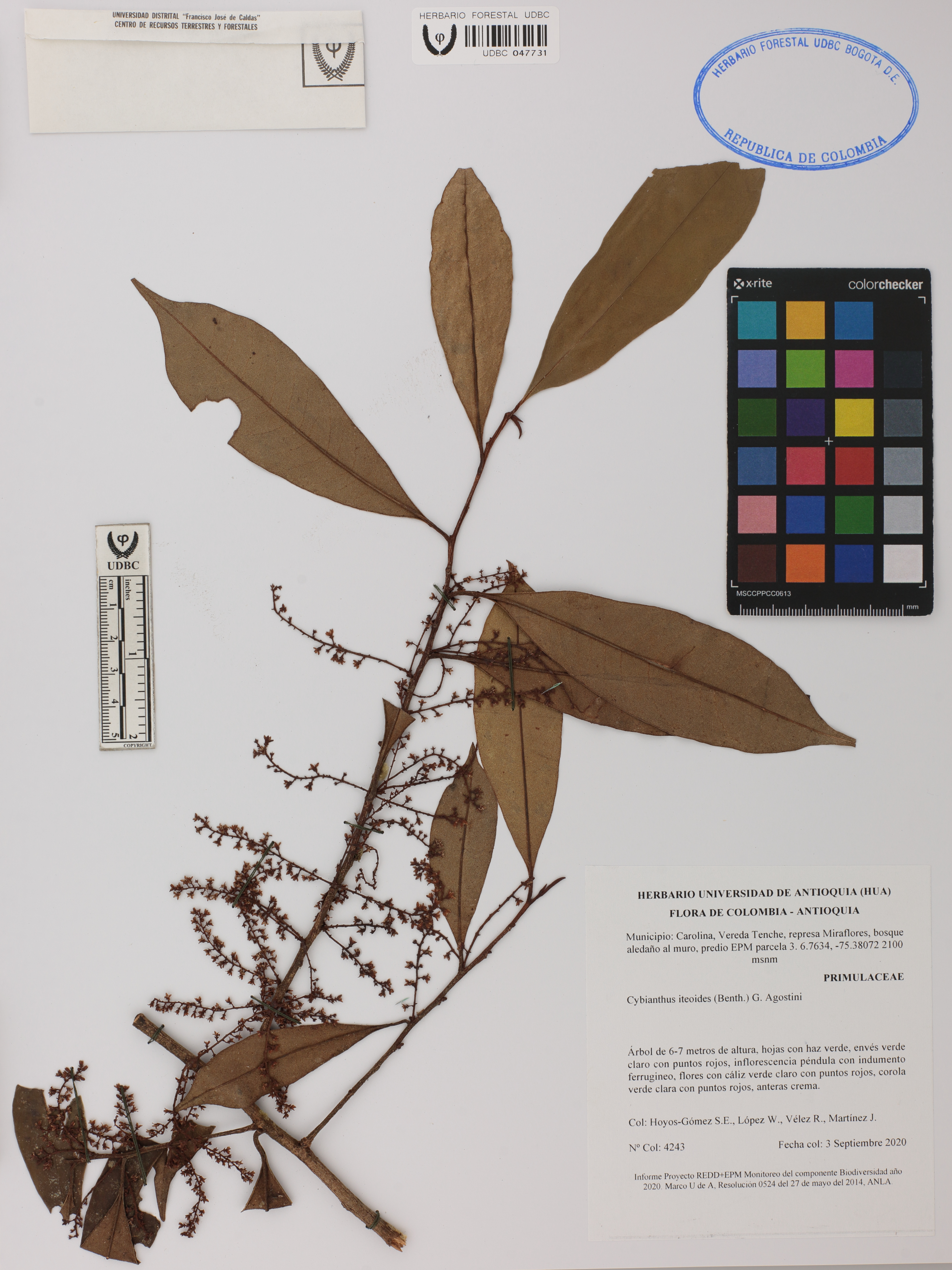 Fotografía del ejemplar Hoyos-Gómez, S. 4243, determinado como Cybianthus iteoides