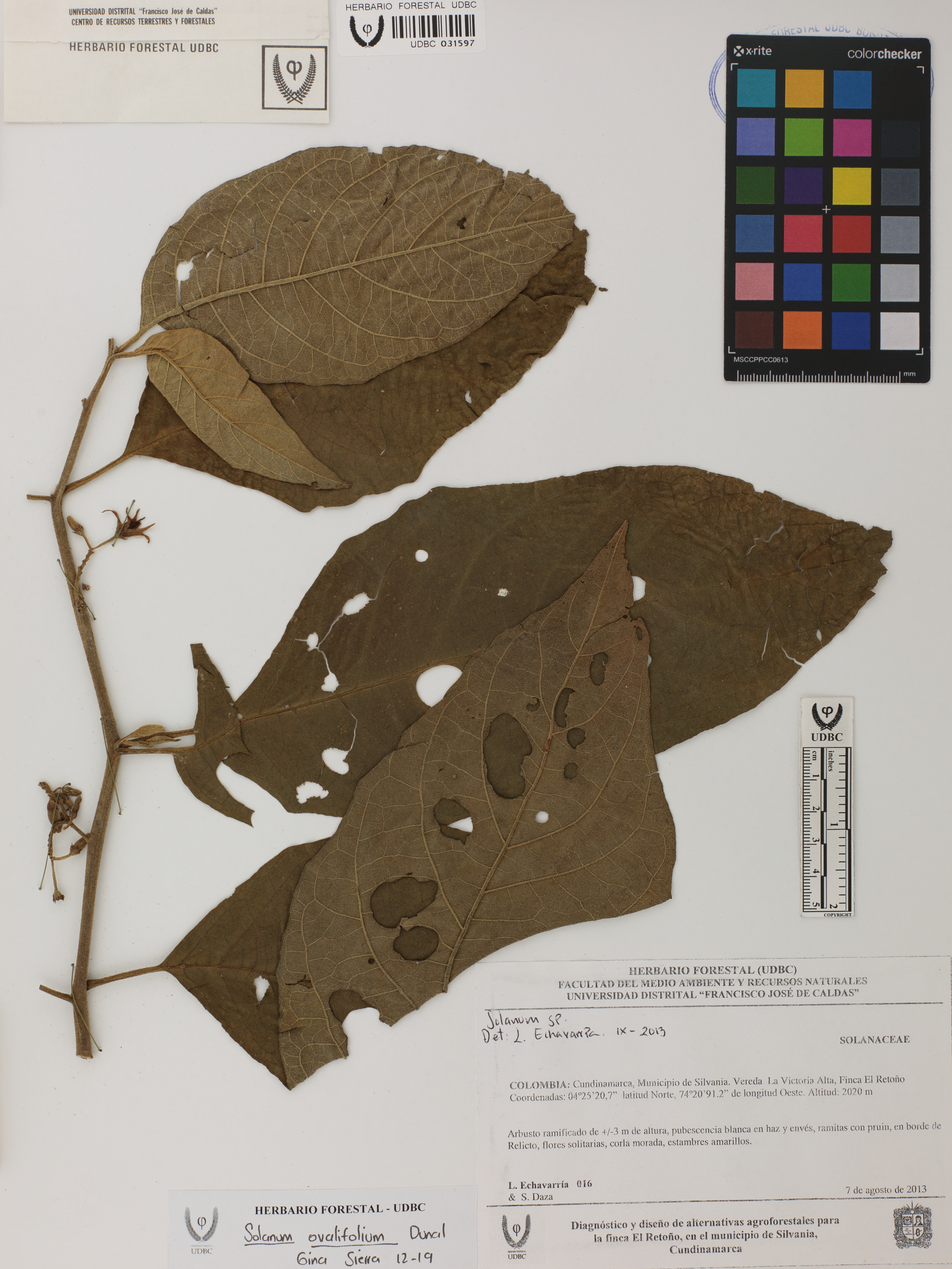 Fotografía del ejemplar Echavarría, L. 16, determinado como Solanum ovalifolium en el año 2019