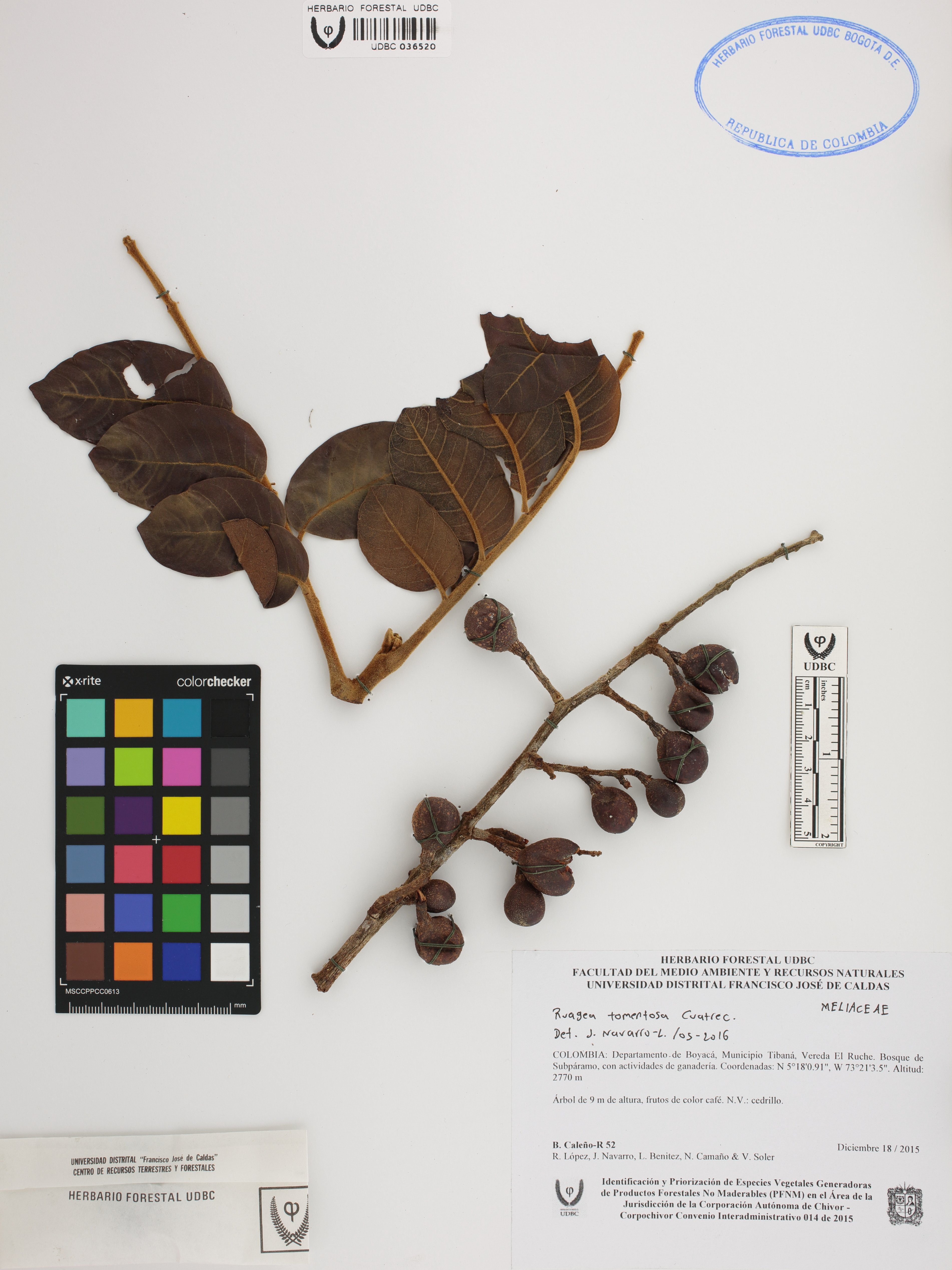 | dc.description | Fotografía del ejemplar Caleño-R., B. 52, determinado como Ruagea tomentosa en el año 2016 | |