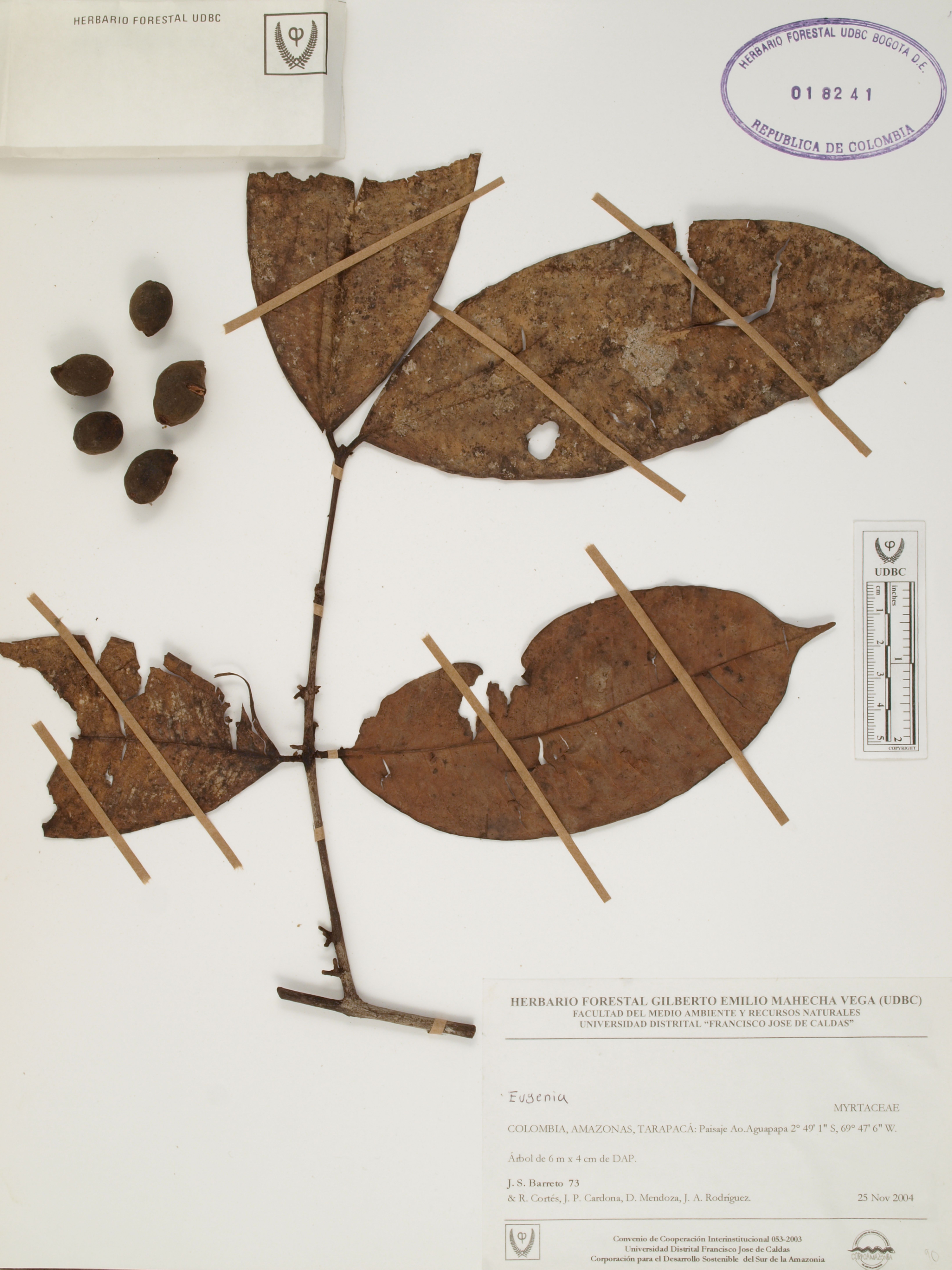 Fotografía del ejemplar Barreto, J. 73, determinado como Eugenia sp.