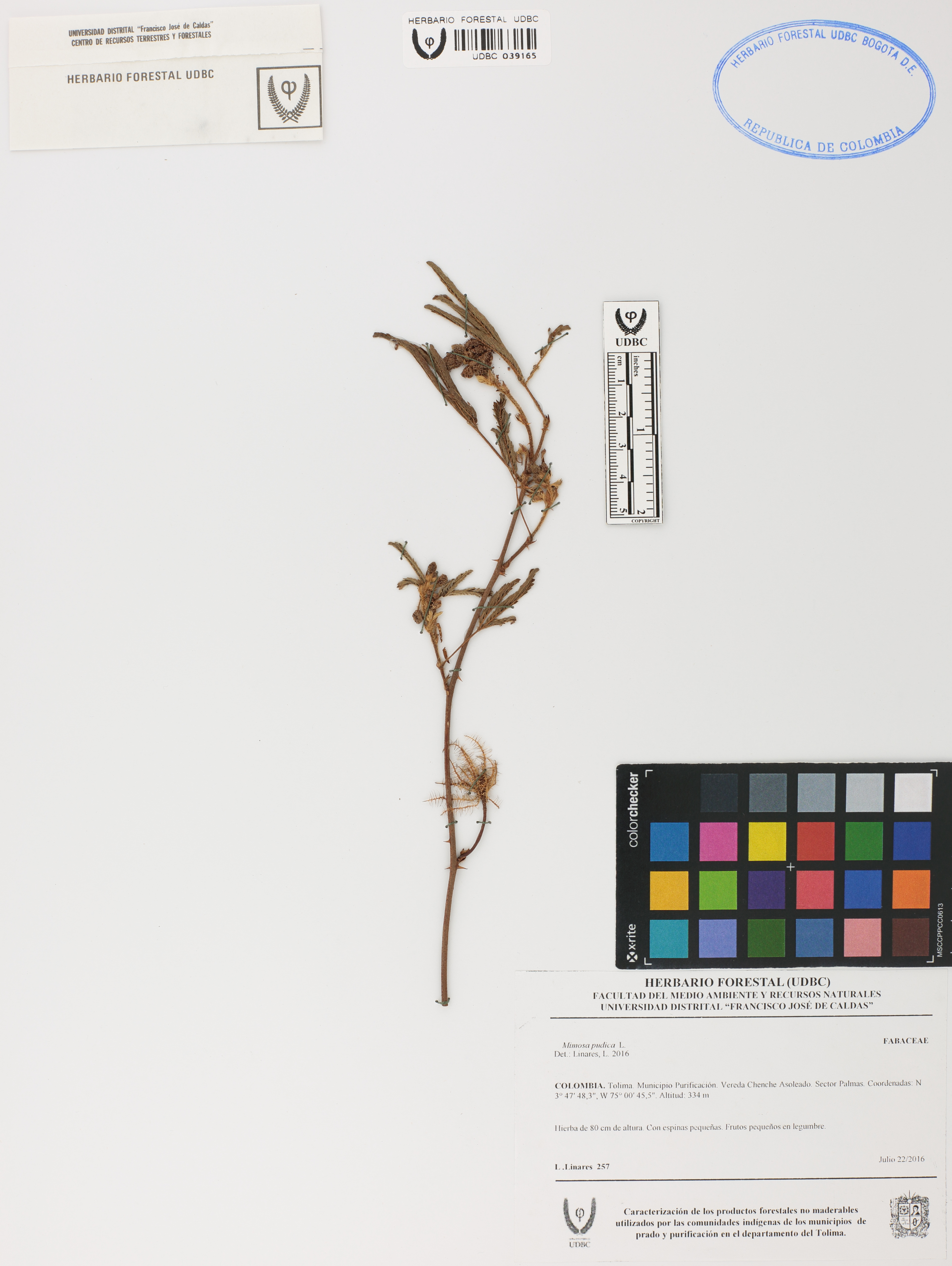 Fotografía del ejemplar Linares, L. 257, determinado como Mimosa pudica en el año 2016