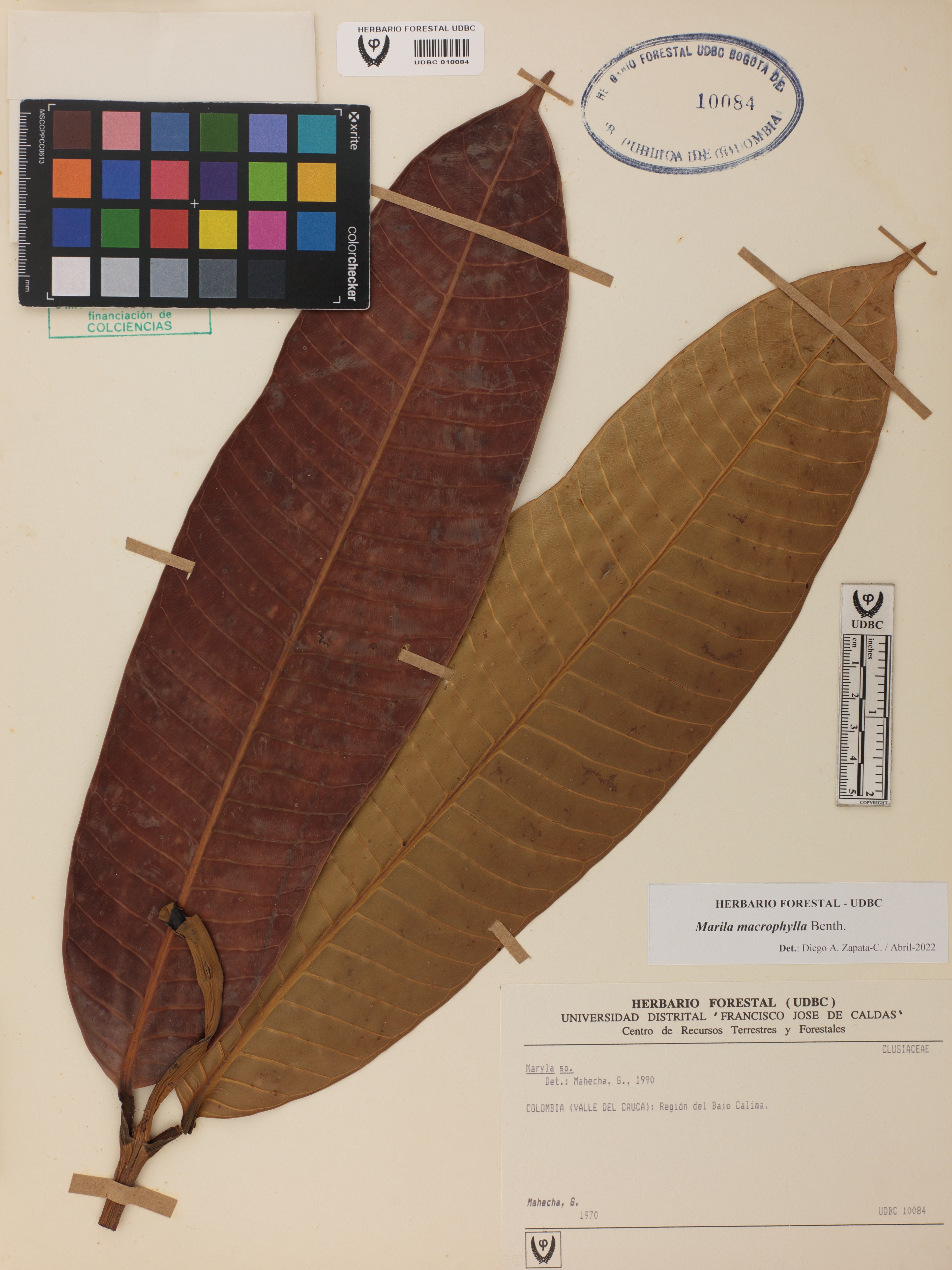 Fotografía del ejemplar Mahecha, G., determinado como Marila macrophylla en el año 2022