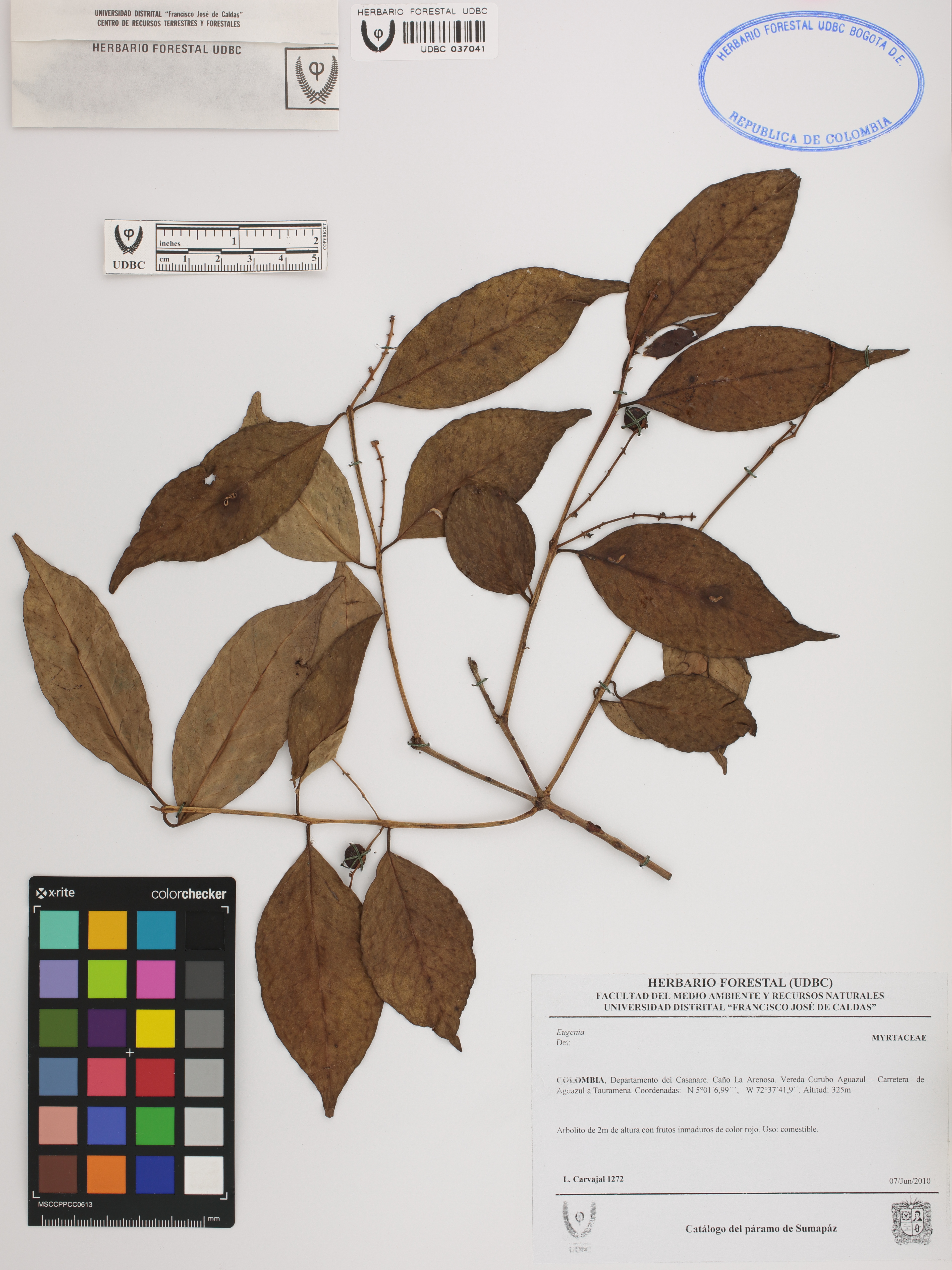 Fotografía del ejemplar Carvajal, L. 1272, determinado como Eugenia sp.