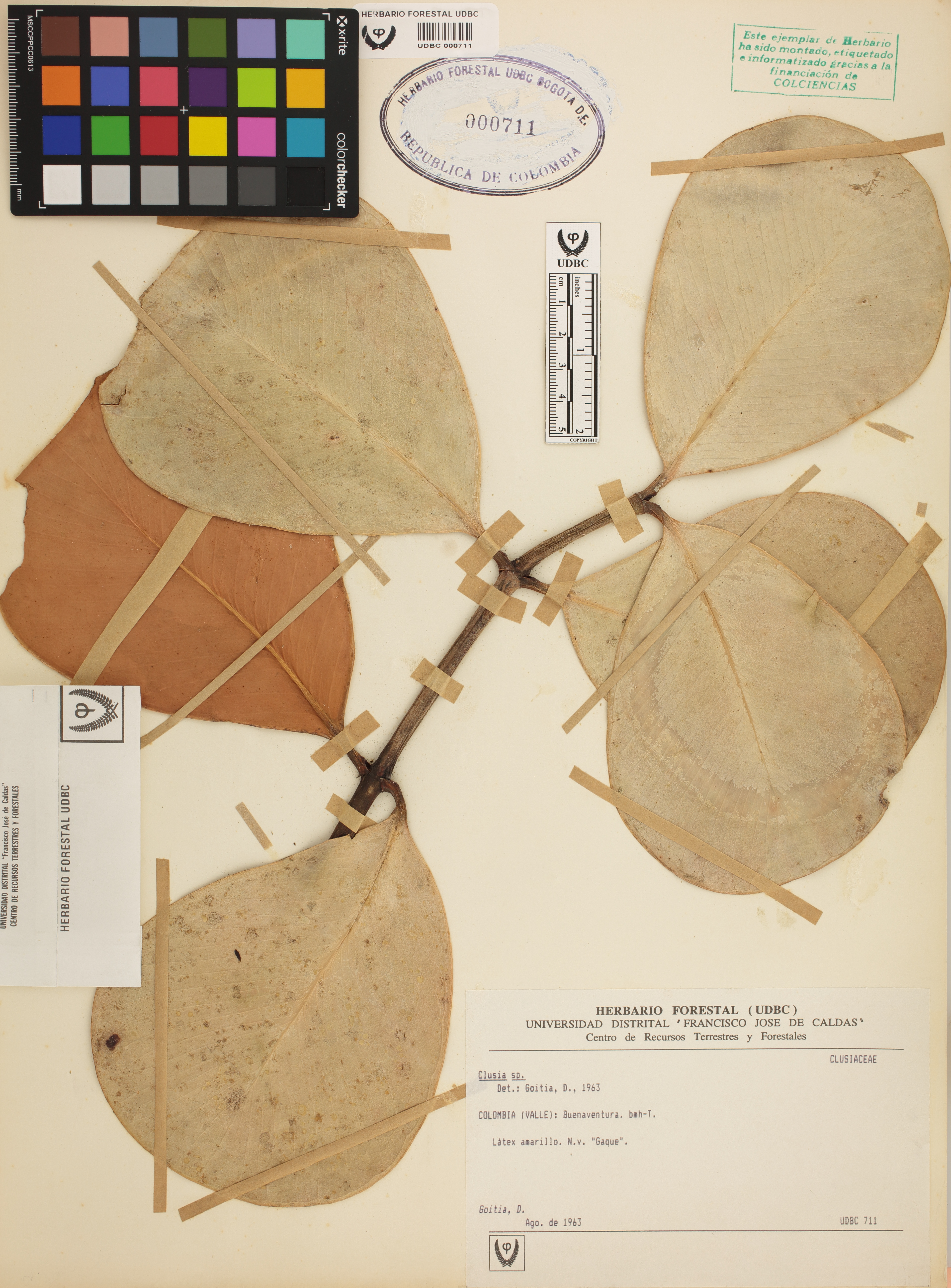 Fotografía del ejemplar Goitia, D., determinado como Clusia sp. en el año 1963