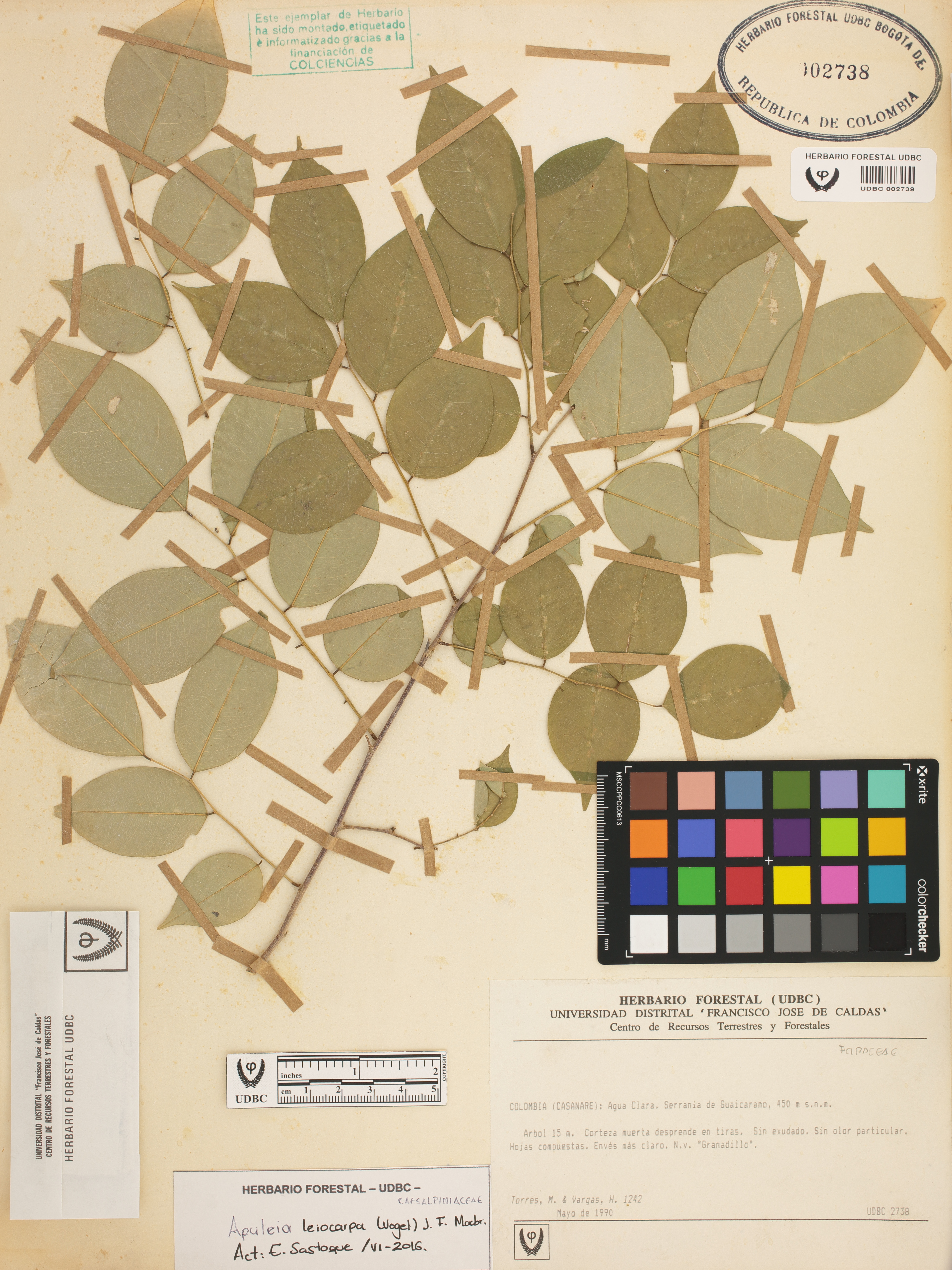 Fotografía del ejemplar Torres, M. 1242, determinado como Apuleia leiocarpa en el año 2016
