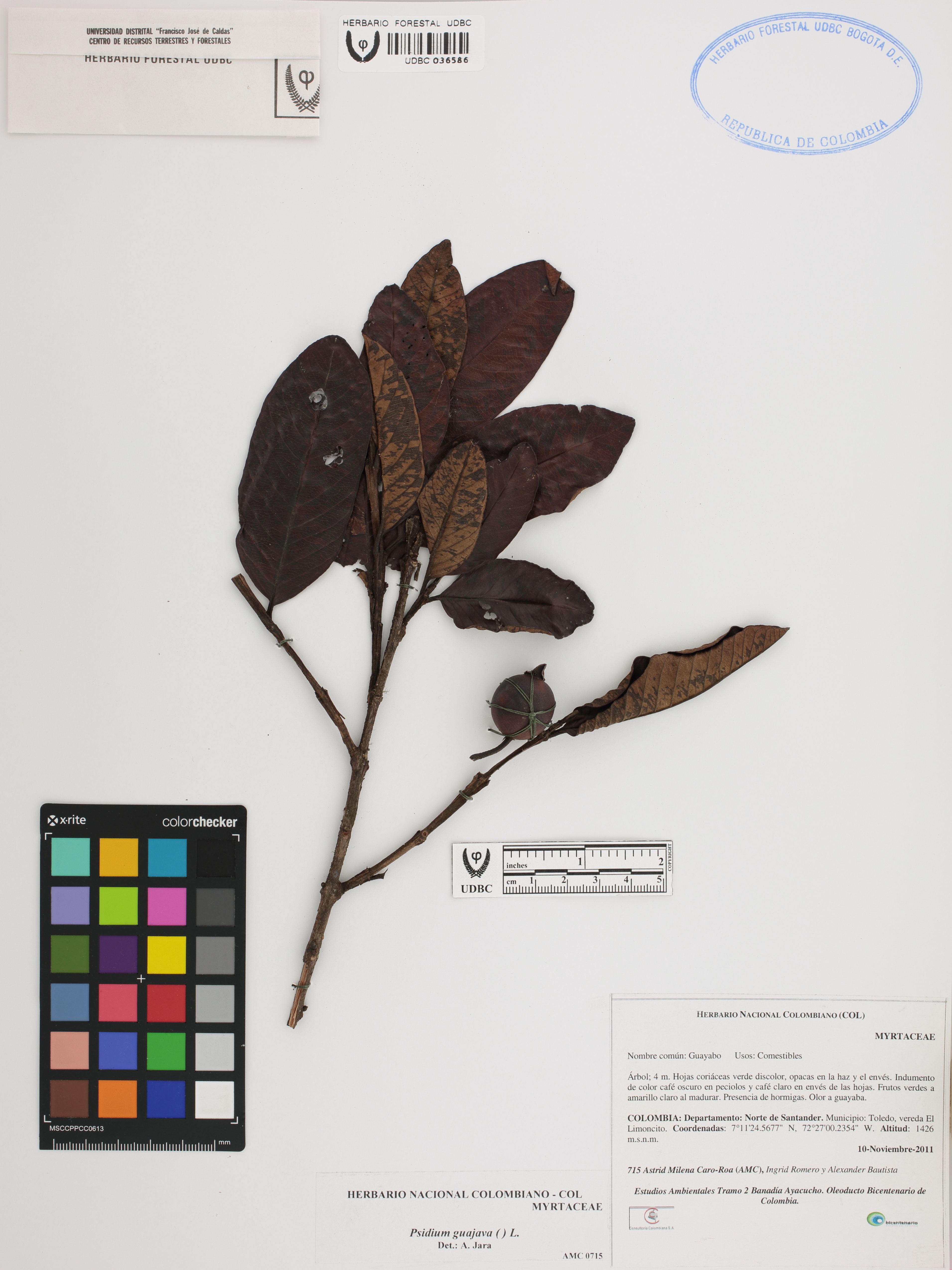 Fotografía del ejemplar Caro-Roa, A. 715, determinado como Psidium guajava