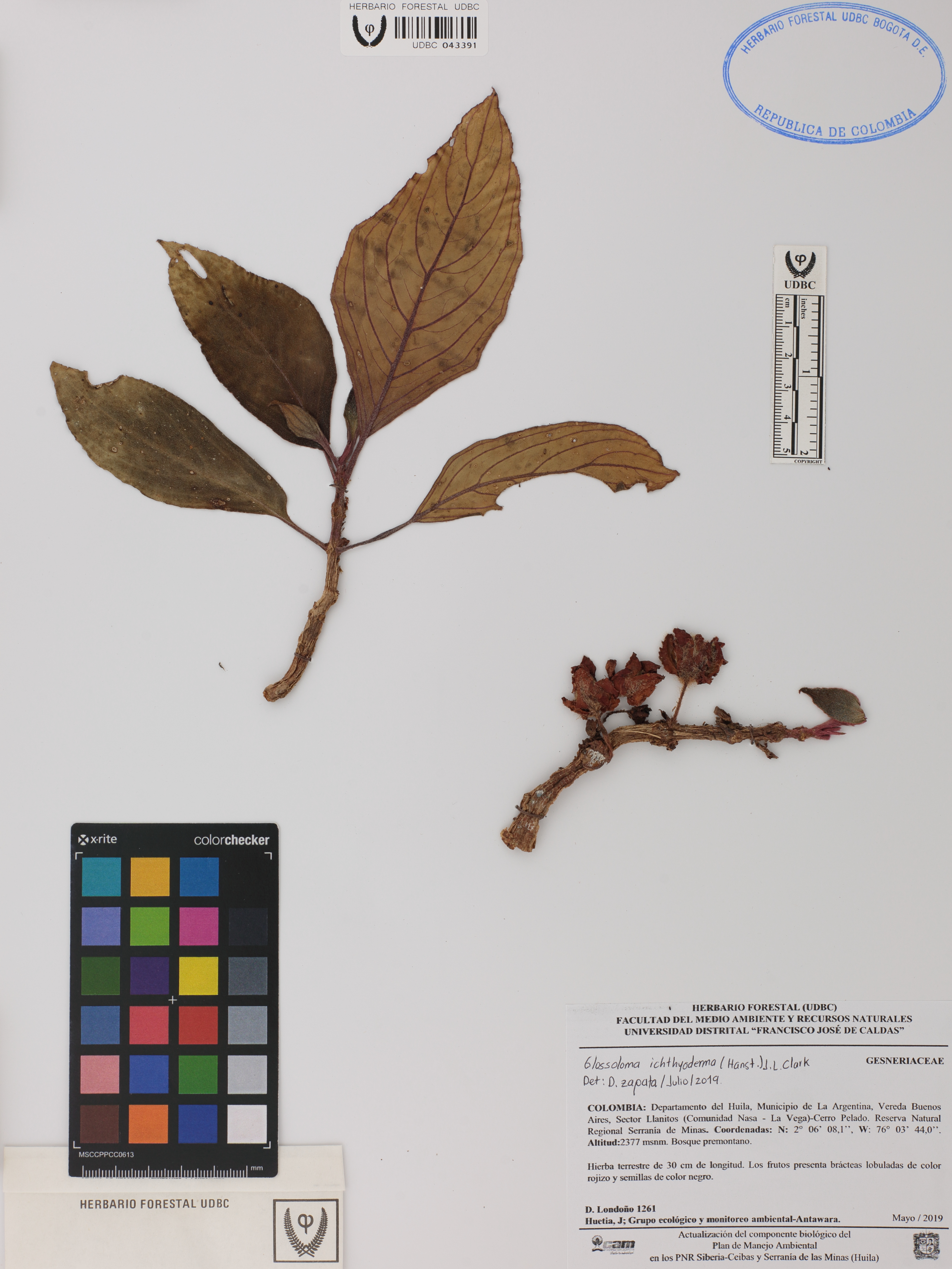 Fotografía del ejemplar Londoño, D. 1261, determinado como Glossoloma ichthyoderma en el año 2019