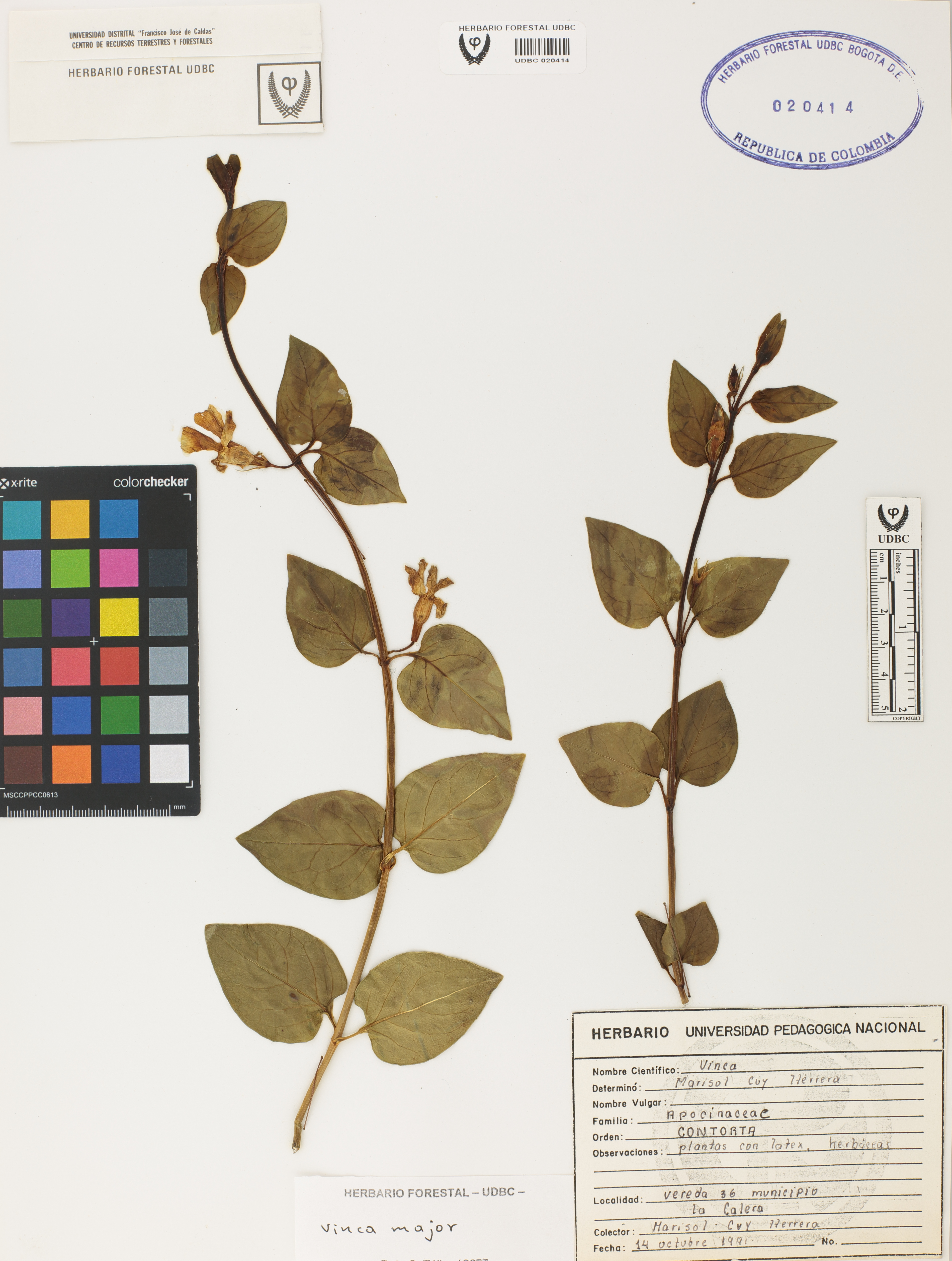 Fotografía del ejemplar Cuy, M., determinado como Vinca major en el año 2007