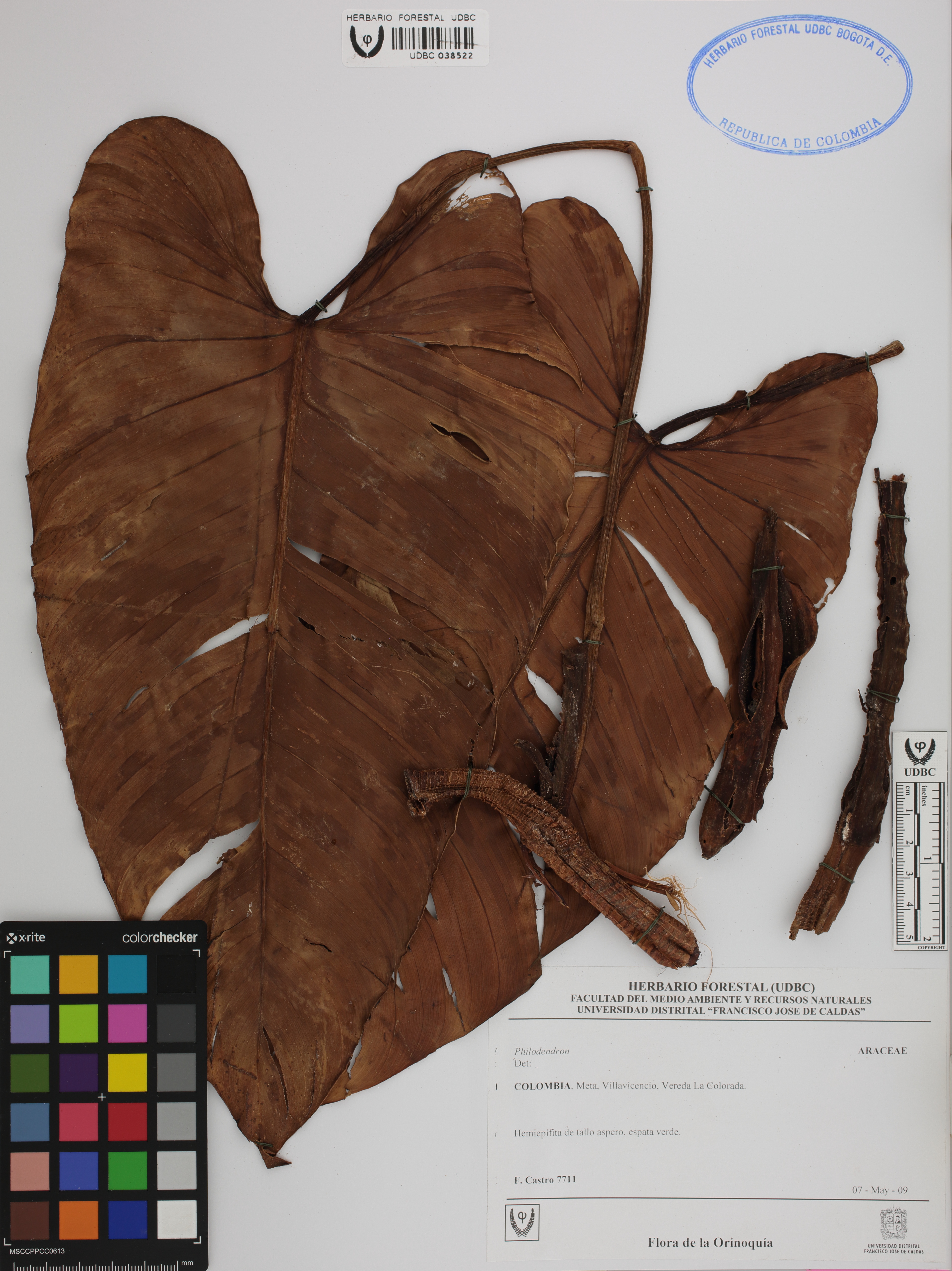 Fotografía del ejemplar Castro, F. 7711, determinado como Philodendron sp.