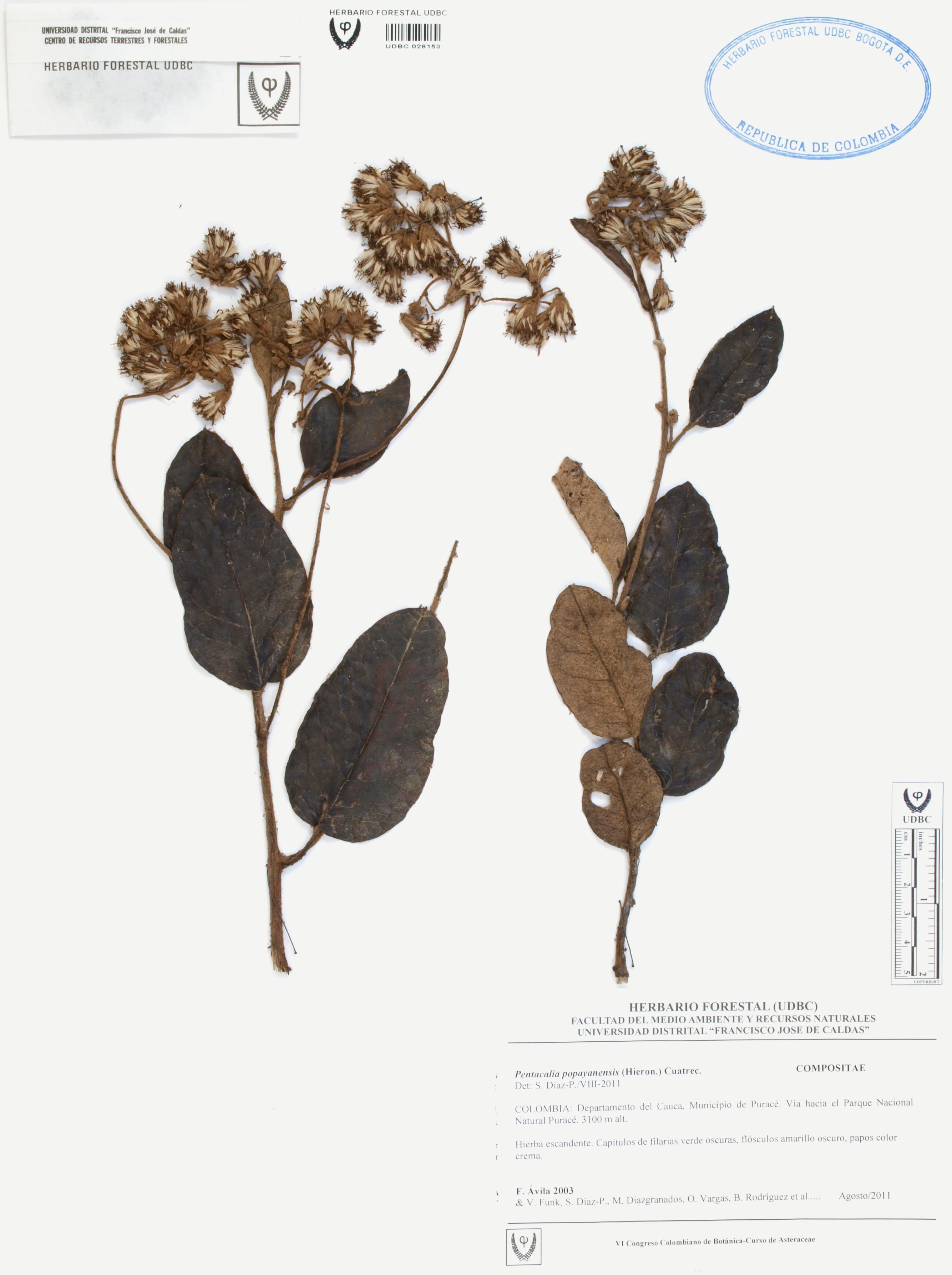 | dc.description | Fotografía del ejemplar Ávila, F. 2003, determinado como Pentacalia popayanensis en el año 2011 | |