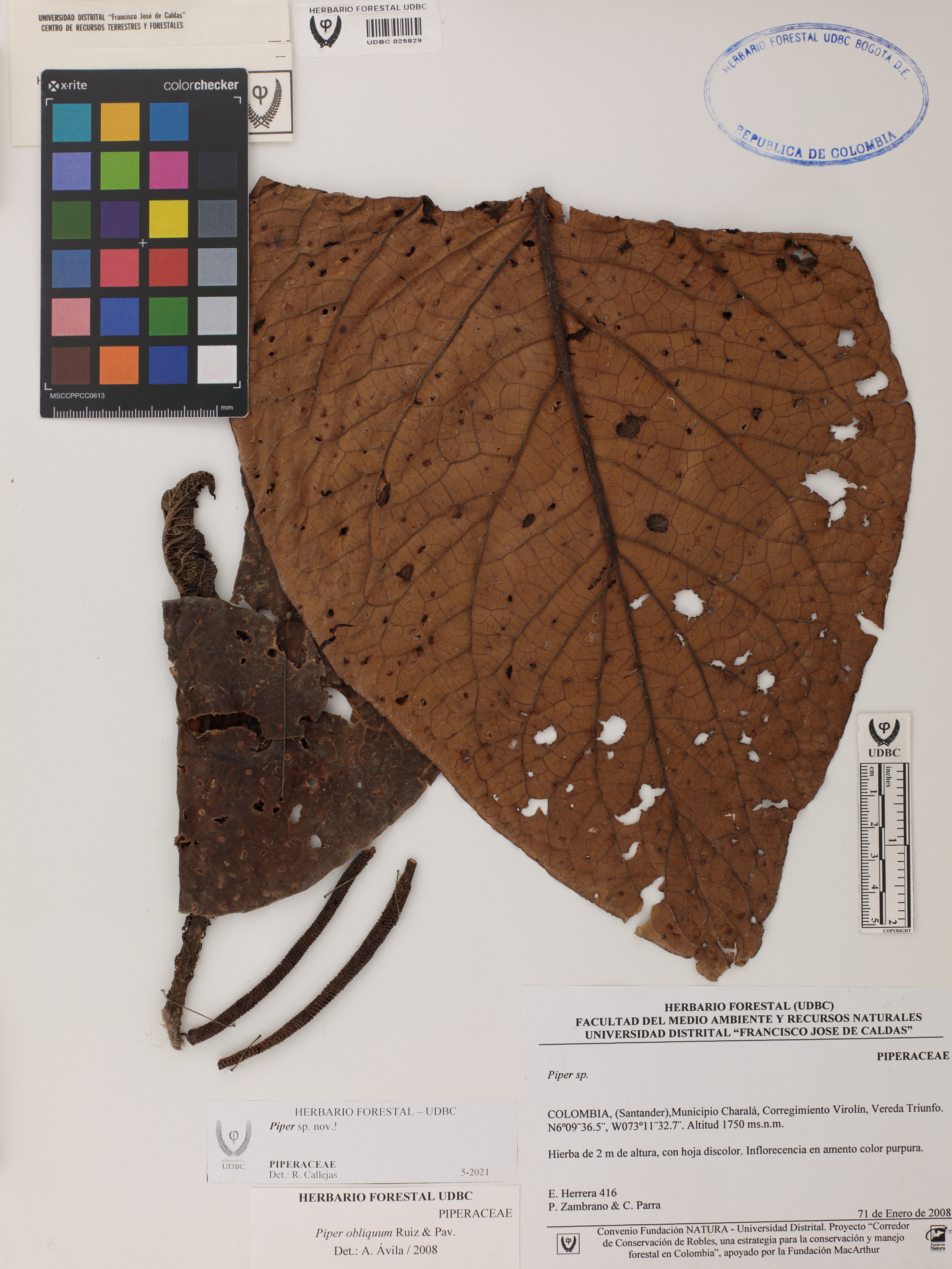 Fotografía del ejemplar Herrera, E. 416, determinado como Piper sp. en el año 2021