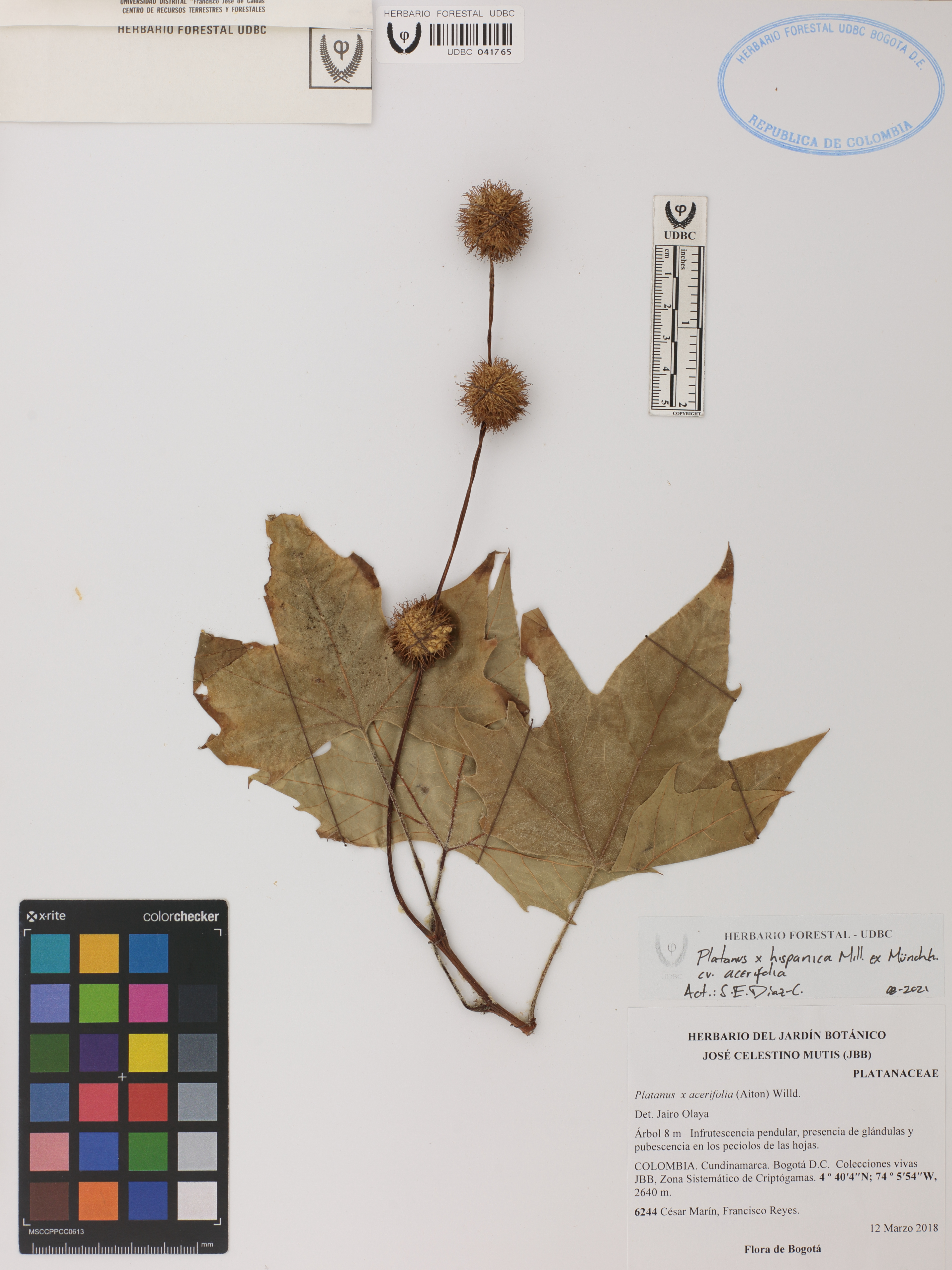 | dc.description | Fotografía del ejemplar Marín, C. 6244, determinado como Platanus × hispanica var. cv. acerifolia en el año 2018 | |