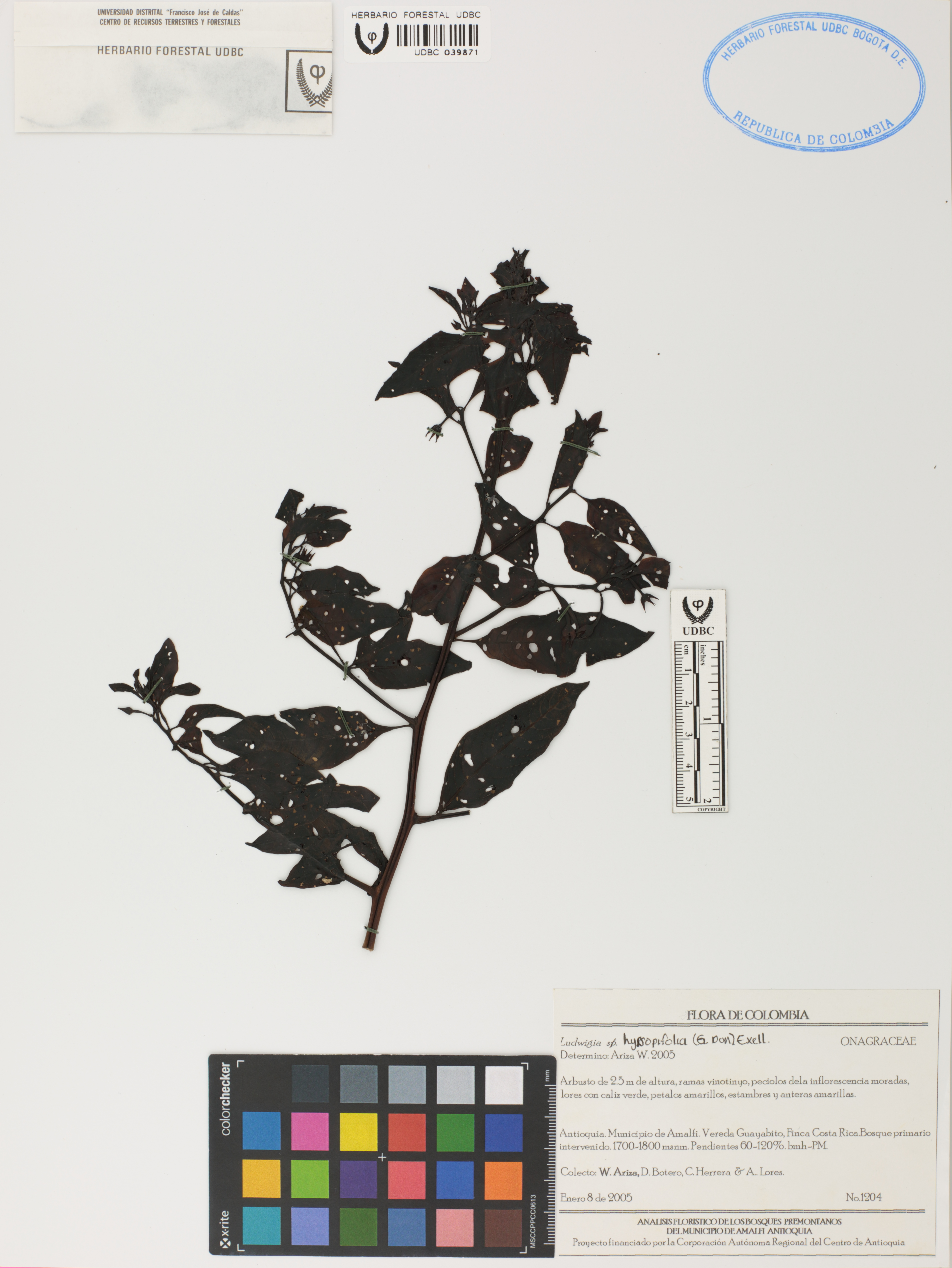 Fotografía del ejemplar Ariza, W. 1204, determinado como Ludwigia hyssopifolia en el año 2005