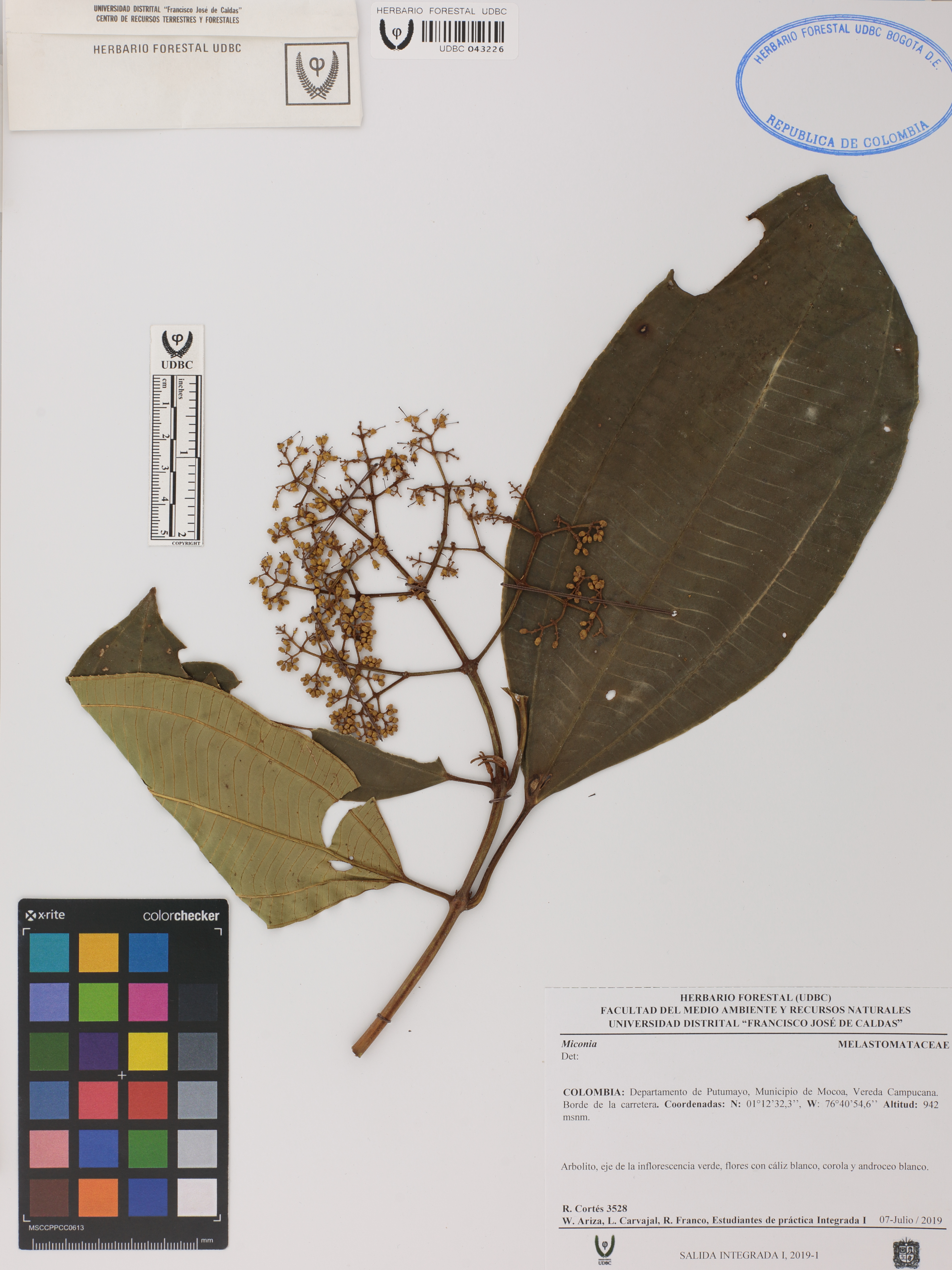 | dc.description | Fotografía del ejemplar Cortés, R. 3528, determinado como Miconia sp. | |
