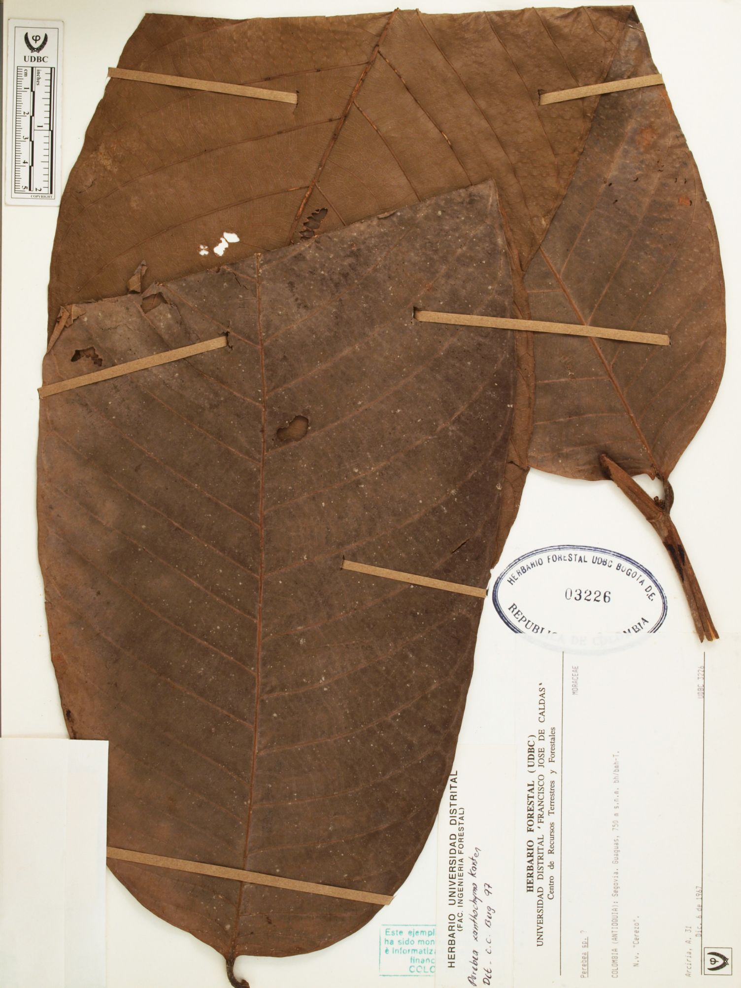 Fotografía del ejemplar Arciria, A. 31, determinado como Perebea xanthochyma en el año 1997