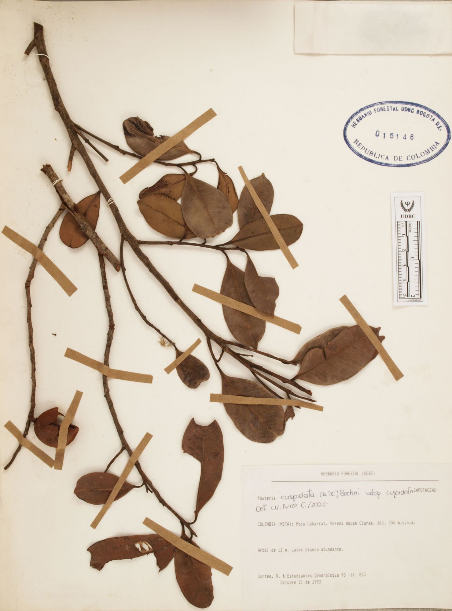 | dc.description | Fotografía del ejemplar Cortés-B., R. 853, determinado como Pouteria cuspidata en el año 2005 | |