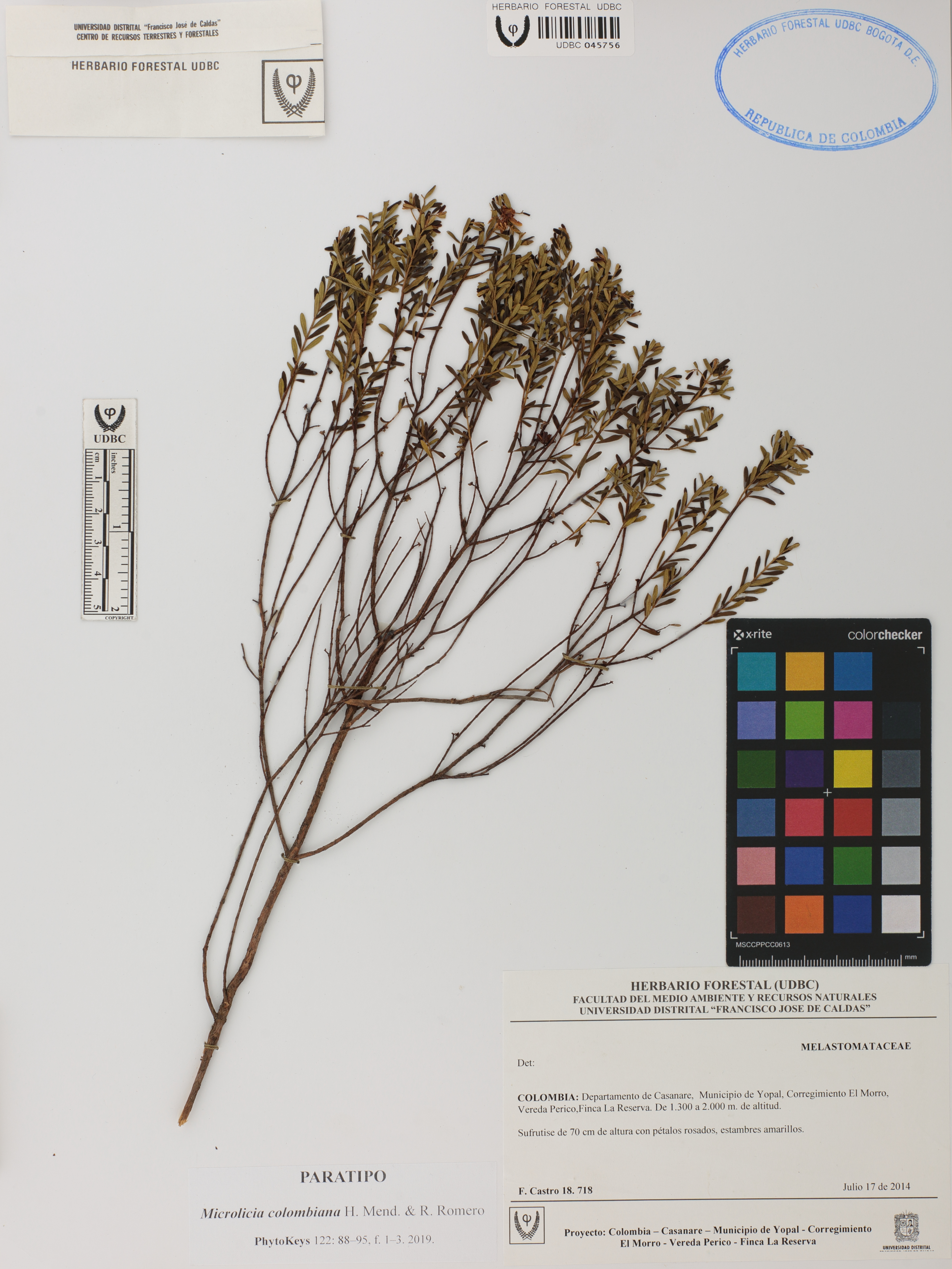 | dc.description | Fotografía del ejemplar Castro, F. 18718, Paratipo de Microlicia colombiana | |