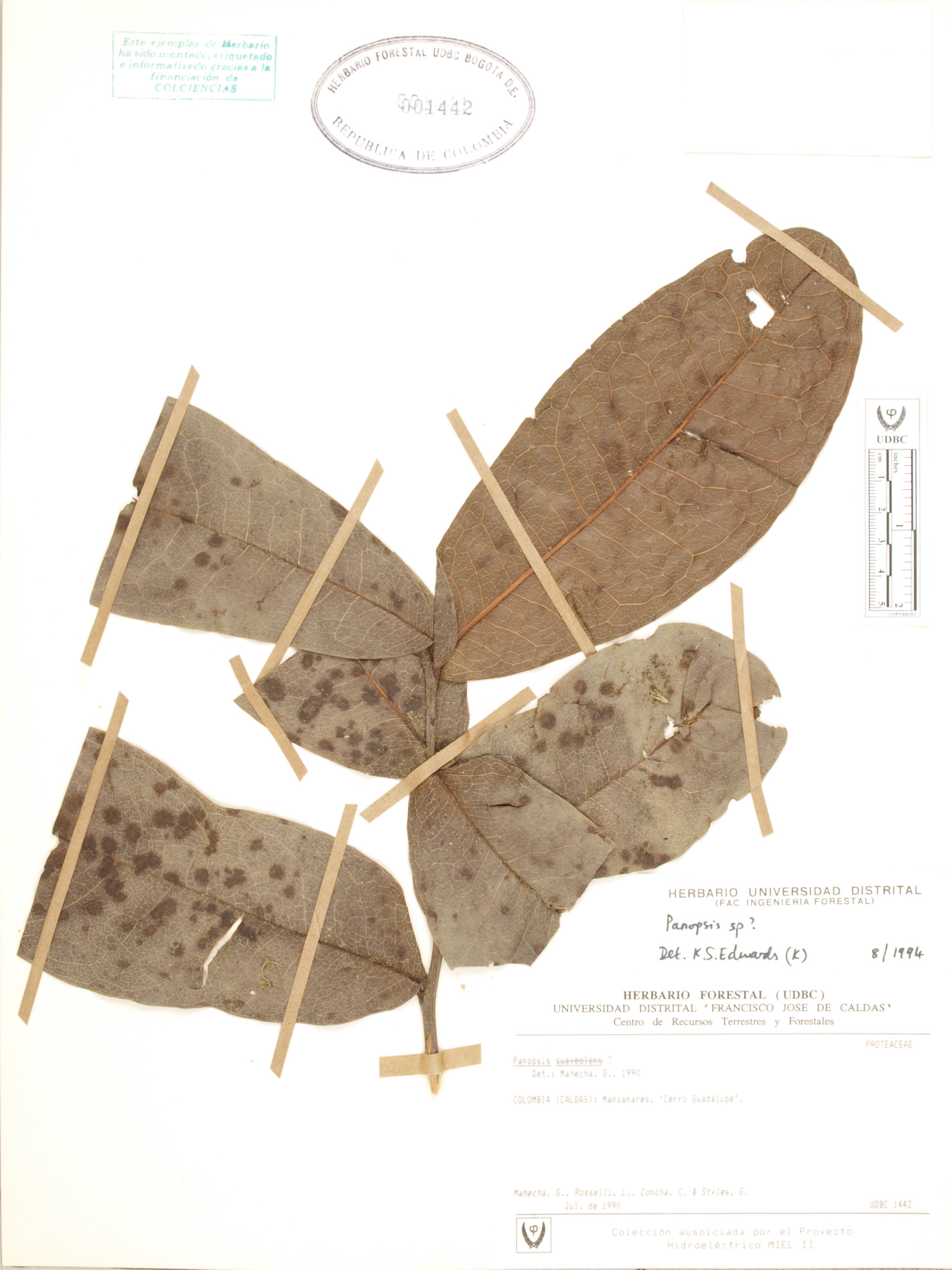 Fotografía del ejemplar Mahecha, G., determinado como Panopsis sp. en el año 1994