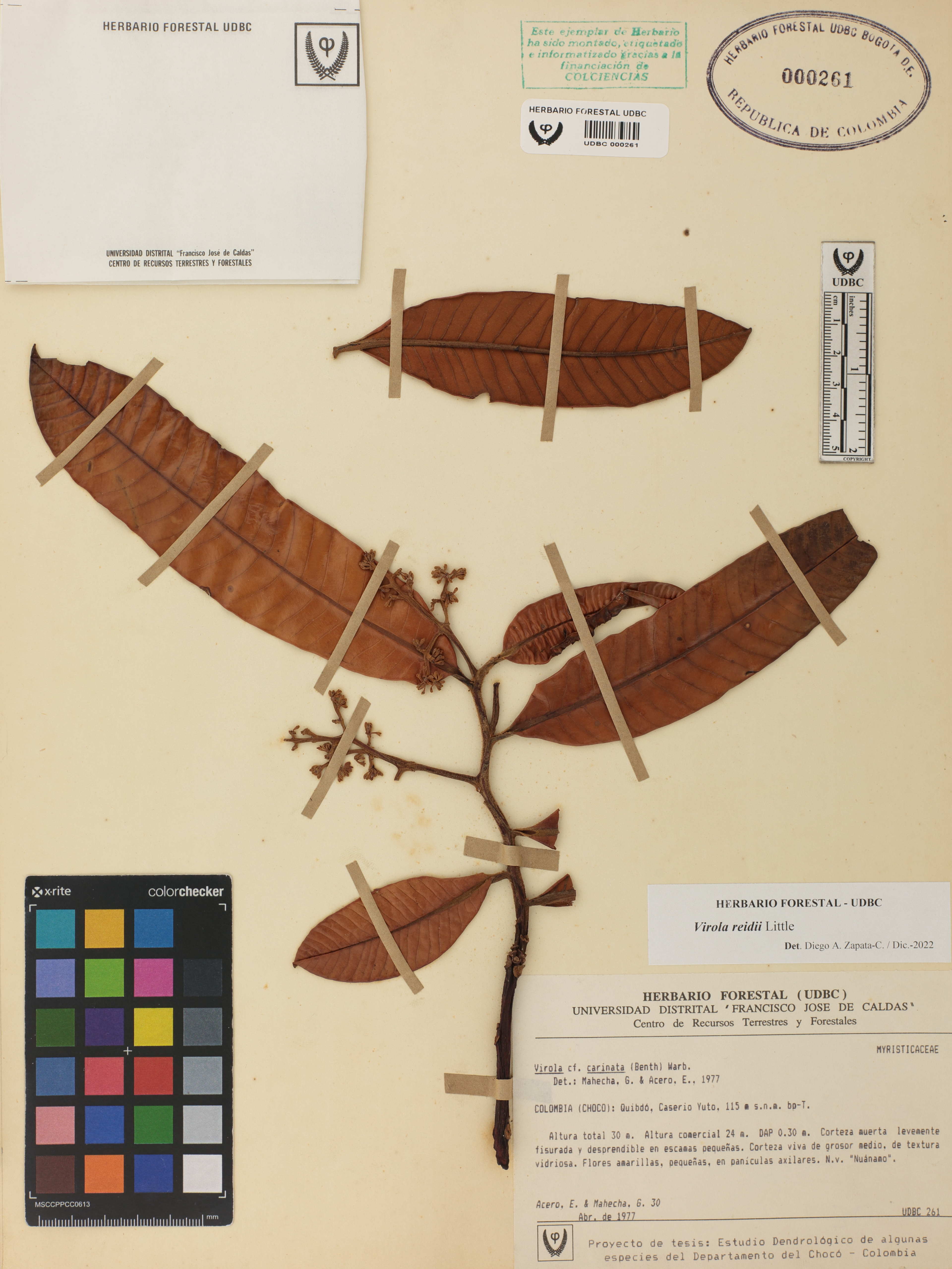 Fotografía del ejemplar Acero, E. 30, determinado como Virola reidii en el año 2022