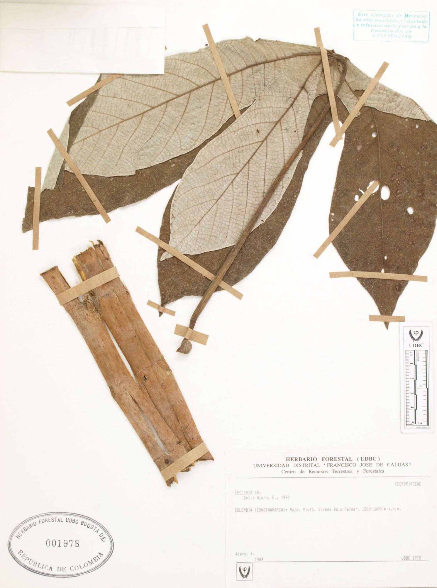 Fotografía del ejemplar Acero, E., determinado como Cecropia sp. en el año 1990