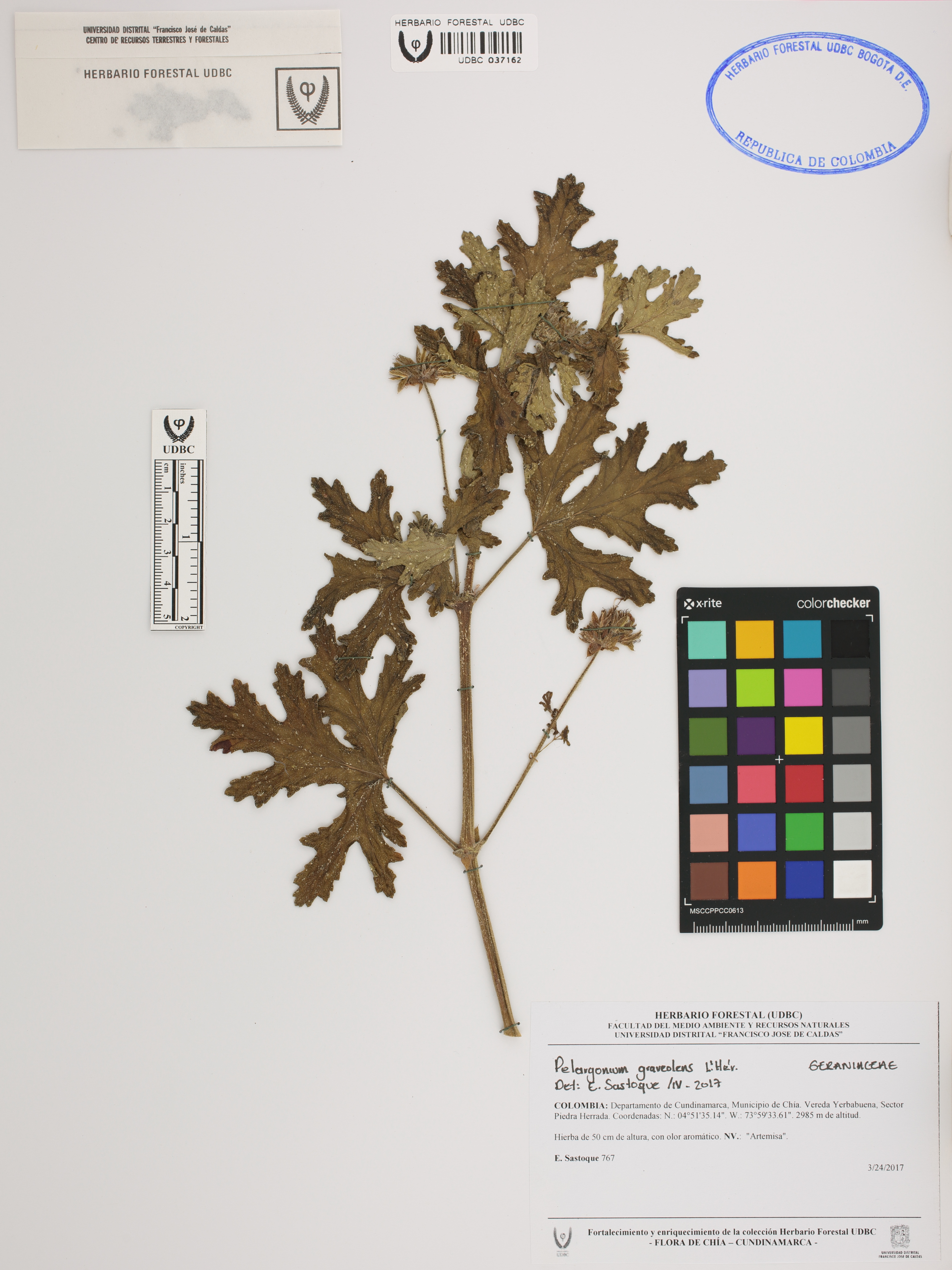 | dc.description | Fotografía del ejemplar Sastoque, E. 767, determinado como Pelargonium graveolens en el año 2017 | |