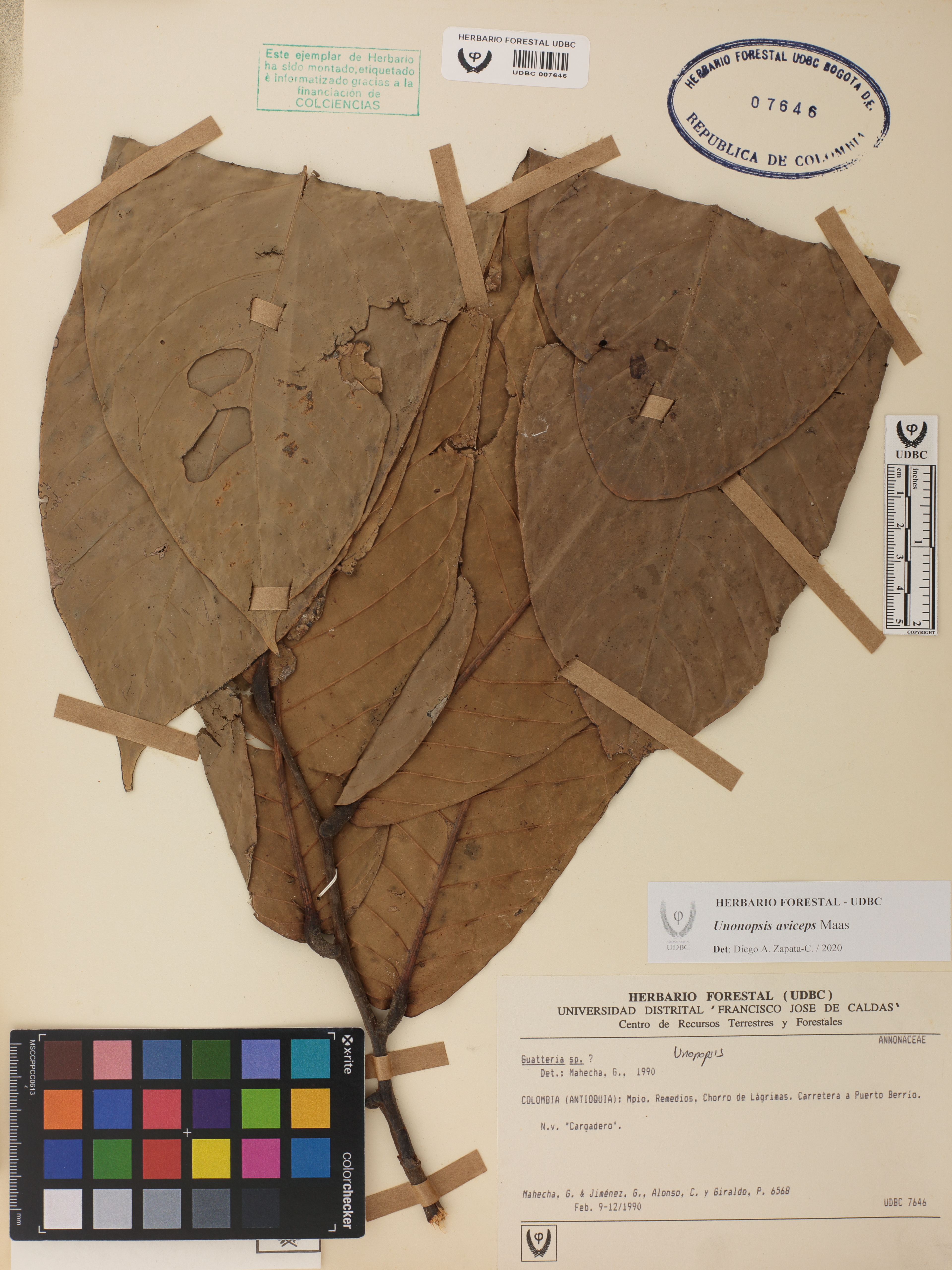 | dc.description | Fotografía del ejemplar Mahecha, G. 6568, determinado como Unonopsis aviceps en el año 2020 | |