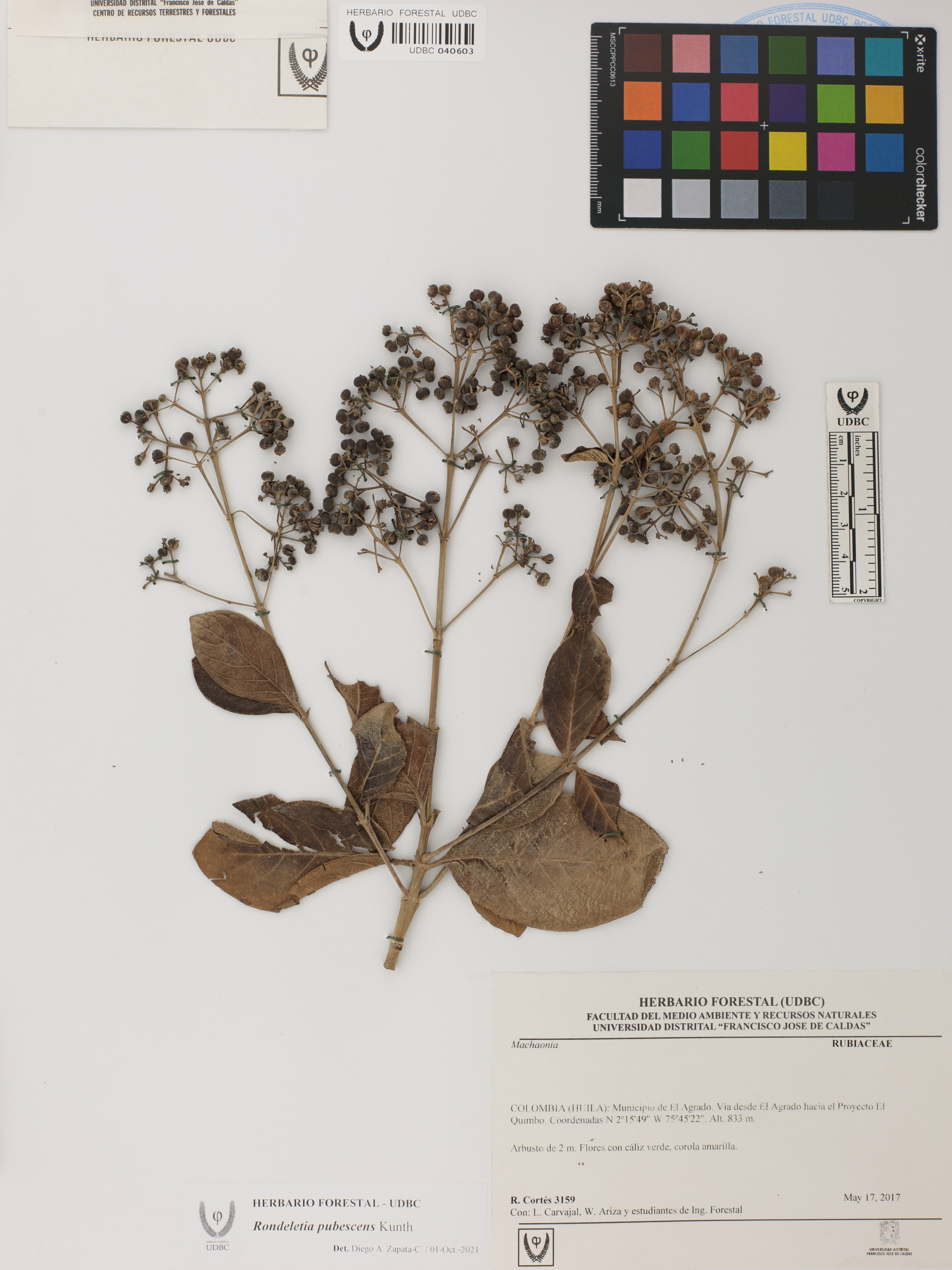 Fotografía del ejemplar Cortés, R. 3159, determinado como Rondeletia pubescens en el año 2021