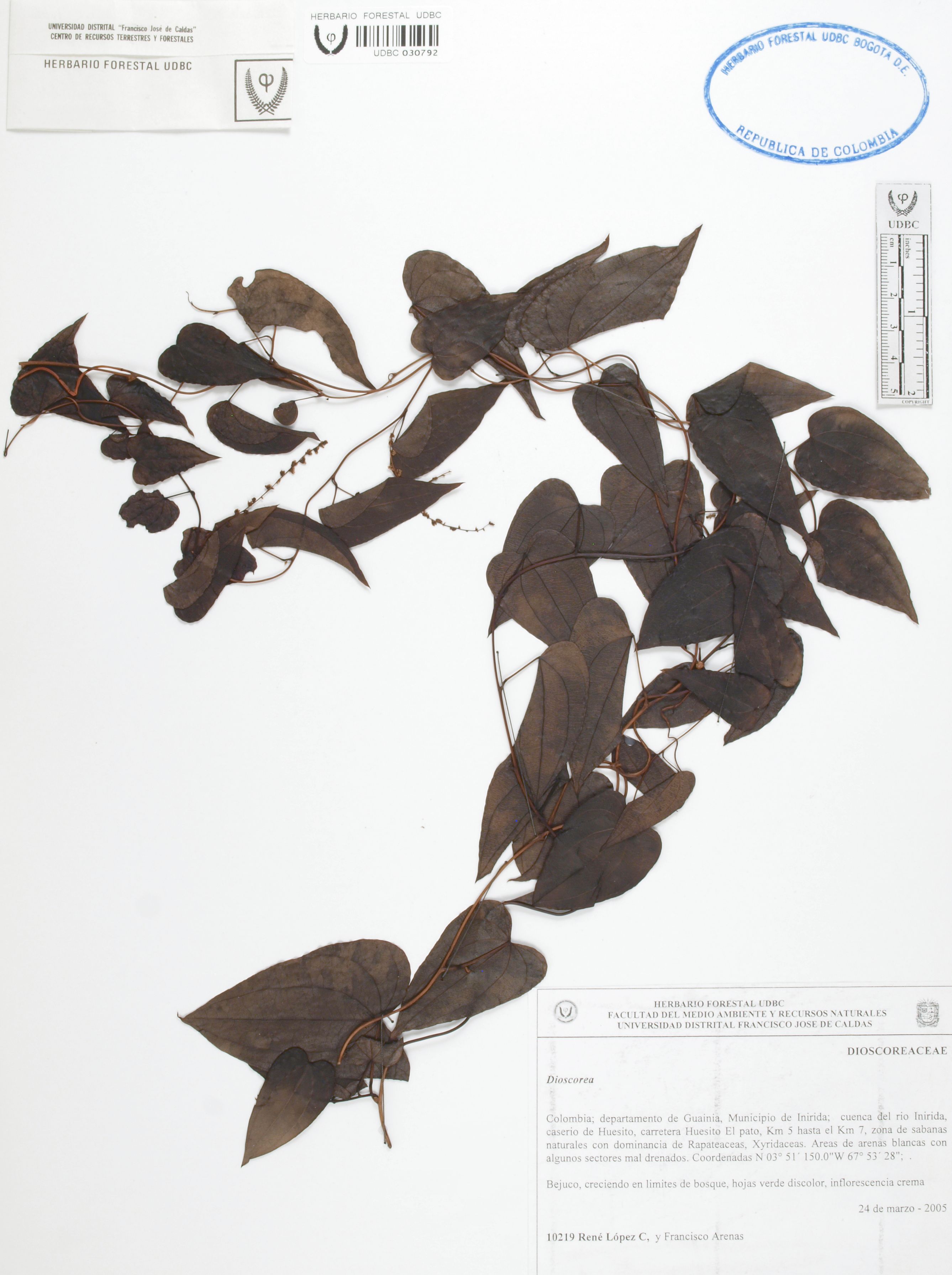 Fotografía del ejemplar López, R. 10219, determinado como Dioscorea sp.