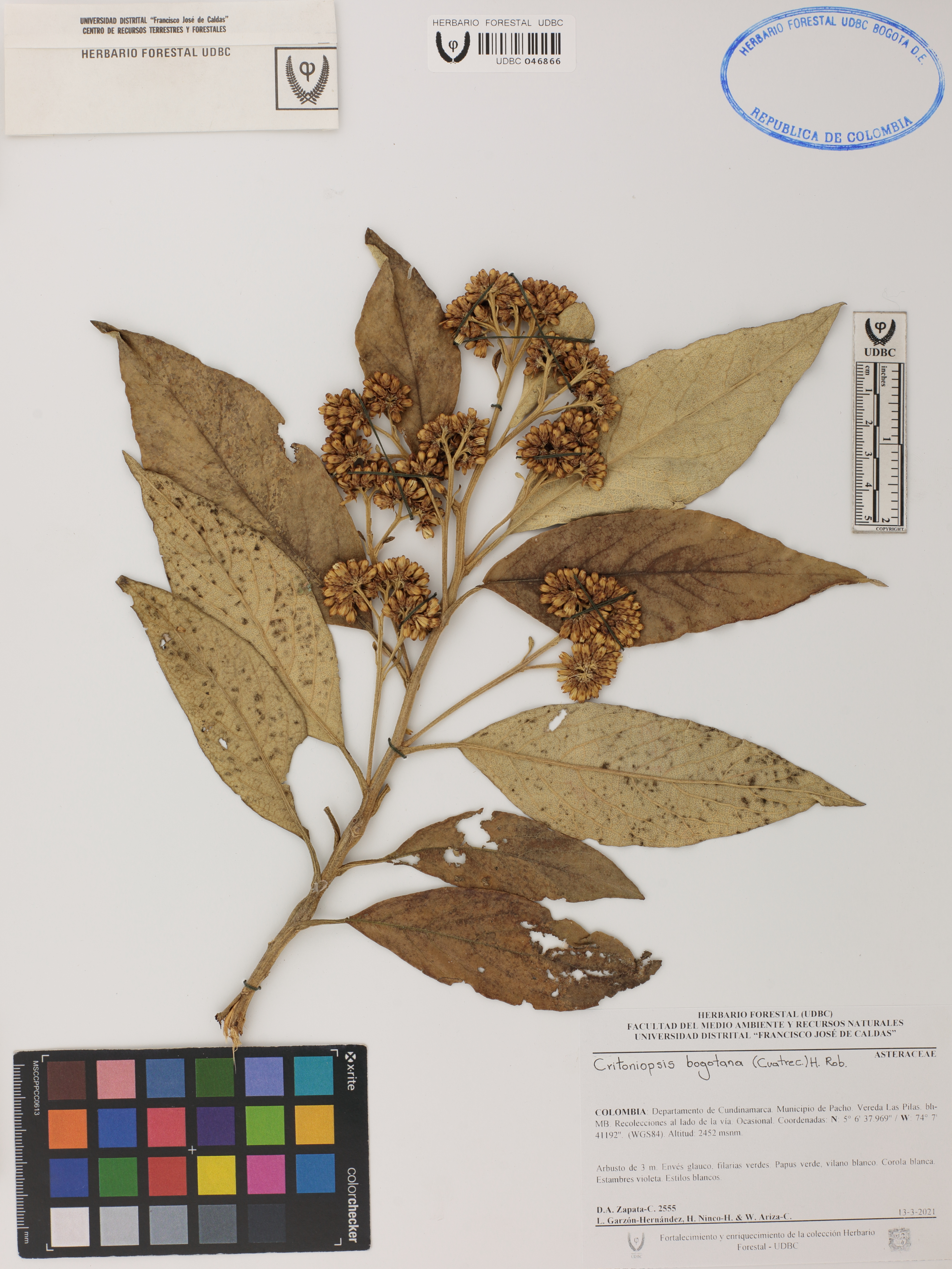 Fotografía del ejemplar Zapata-C., D. 2555, determinado como Critoniopsis bogotana en el año 2022