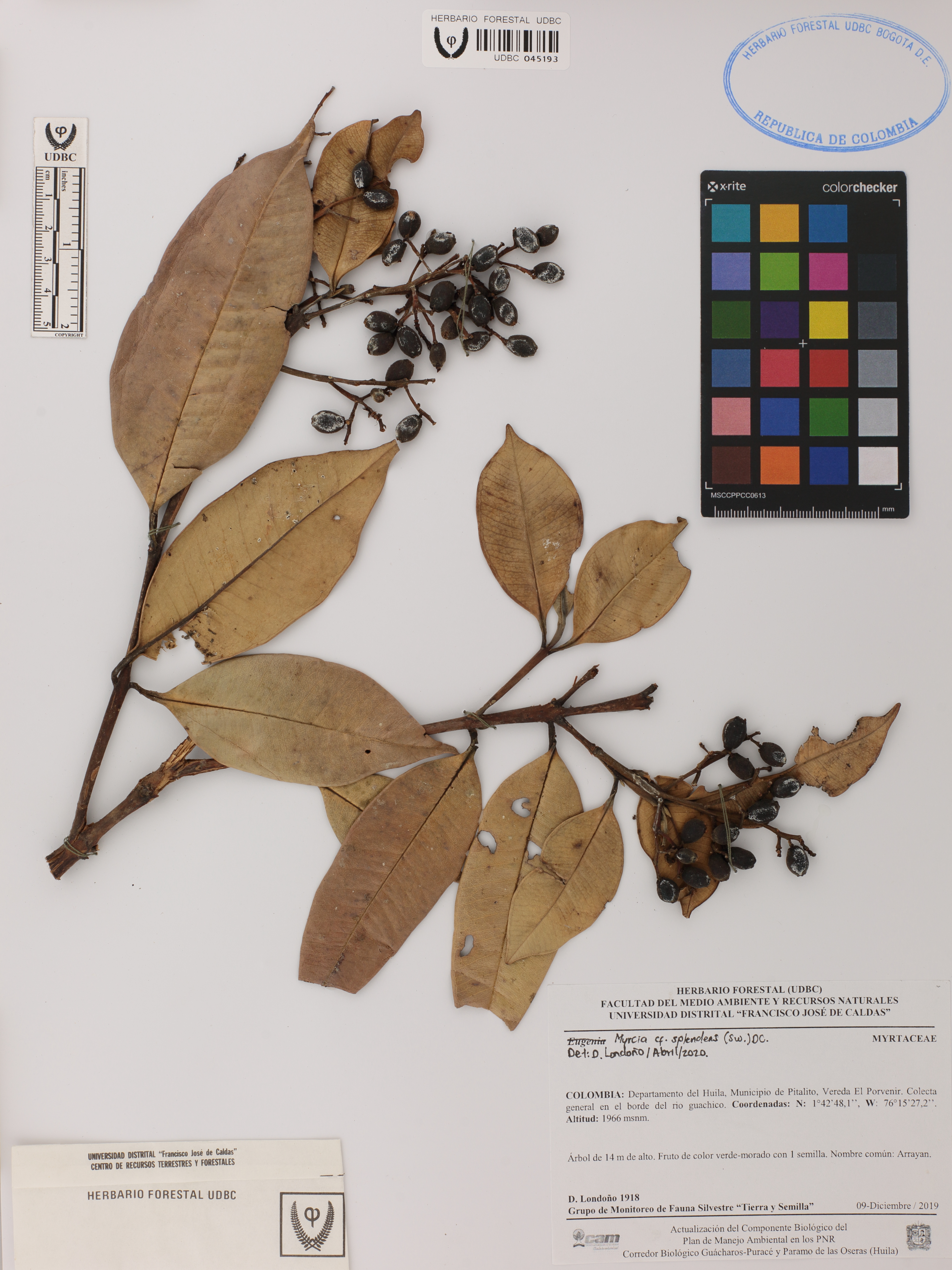 | dc.description | Fotografía del ejemplar Londoño, D. 1918, determinado como Myrcia splendens en el año 2020 | |