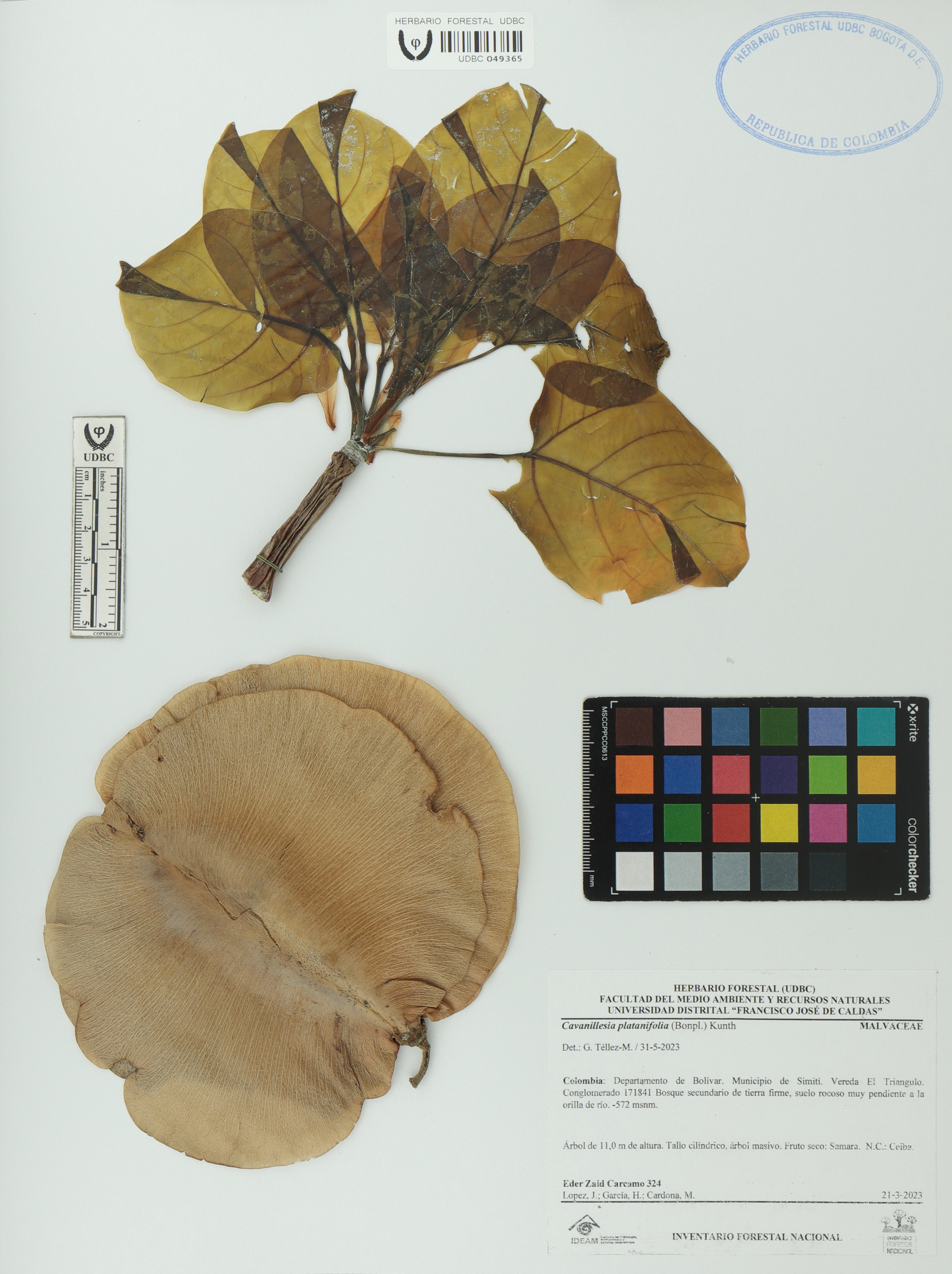 | dc.description | Fotografía del ejemplar Cárcamo-L., E. 324, determinado como Cavanillesia platanifolia en el año 2023 | |