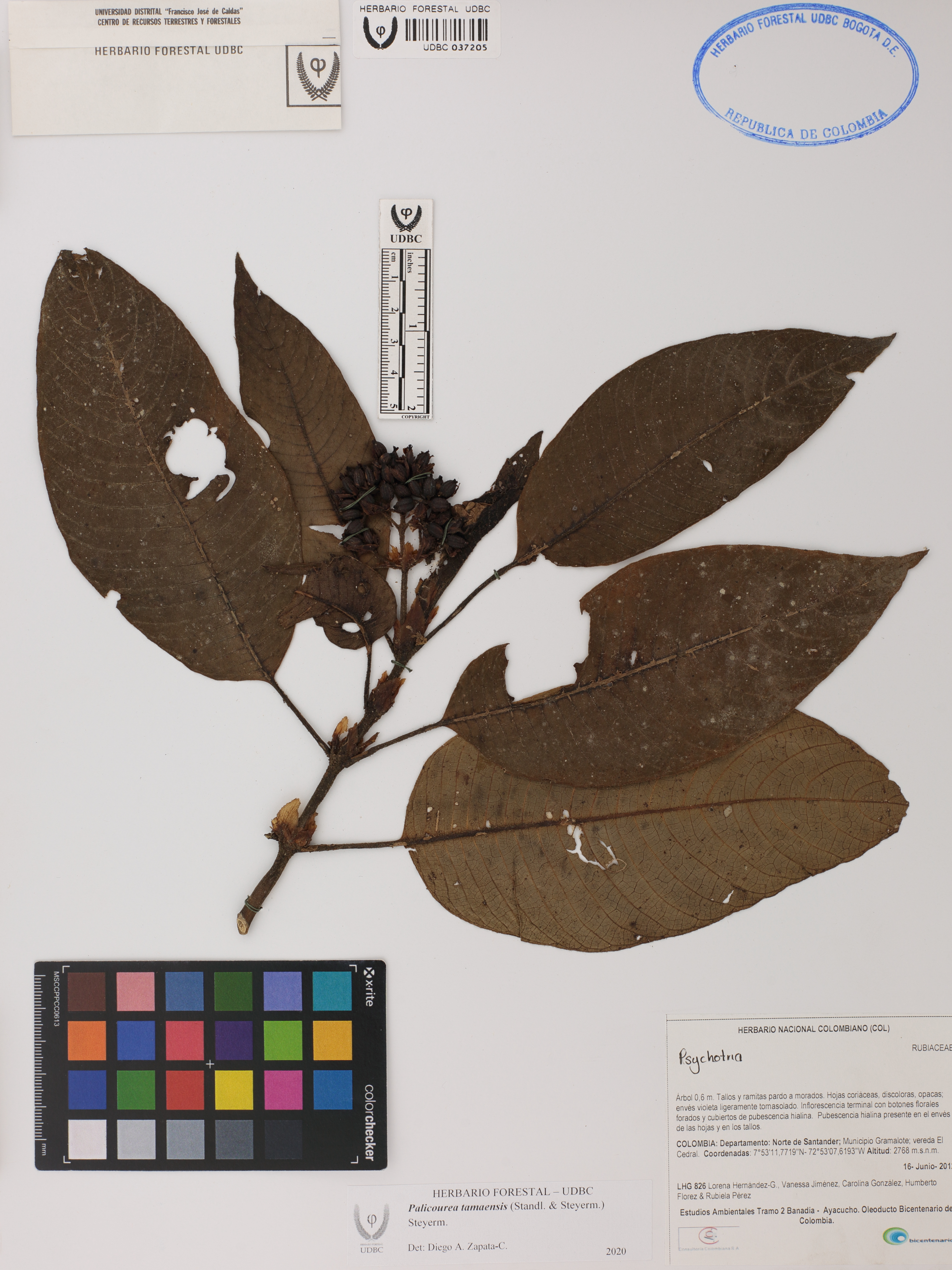 Fotografía del ejemplar Hernández-G., L. 826, determinado como Palicourea tamaensis en el año 2020