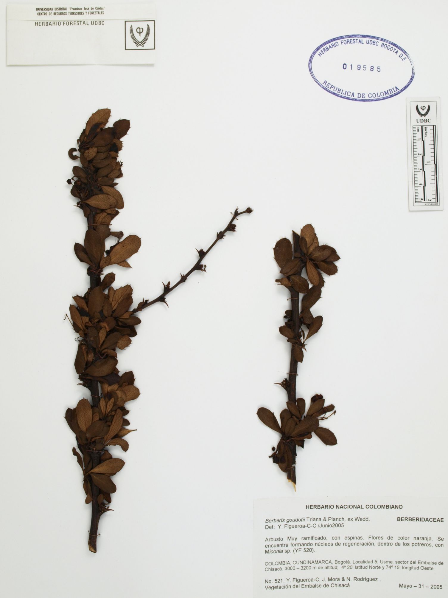 | dc.description | Fotografía del ejemplar Figueroa, Y. 521, determinado como Berberis goudotii en el año 2005 | |