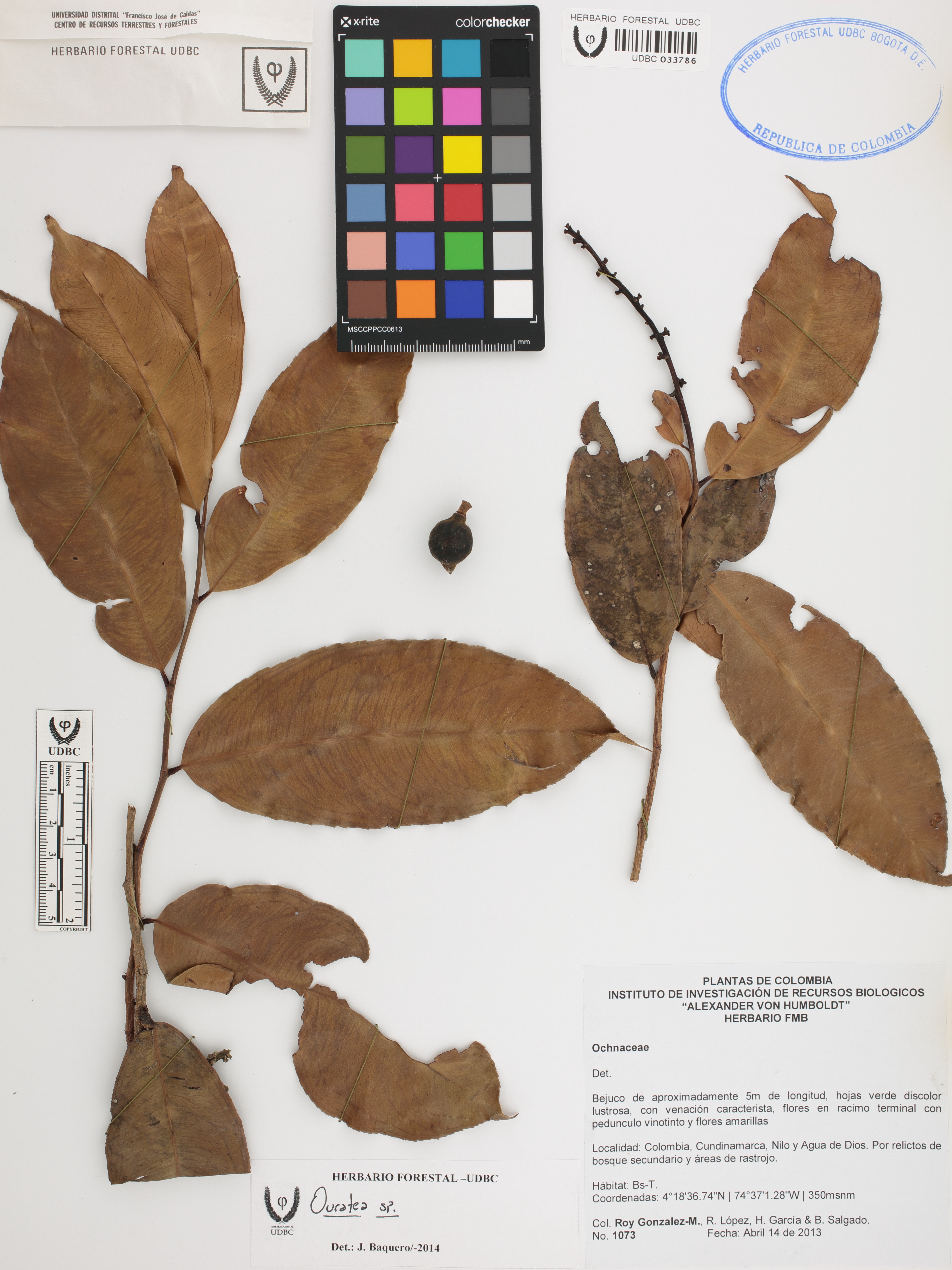 Fotografía del ejemplar González-M., R. 1073, determinado como Ouratea sp. en el año 2014