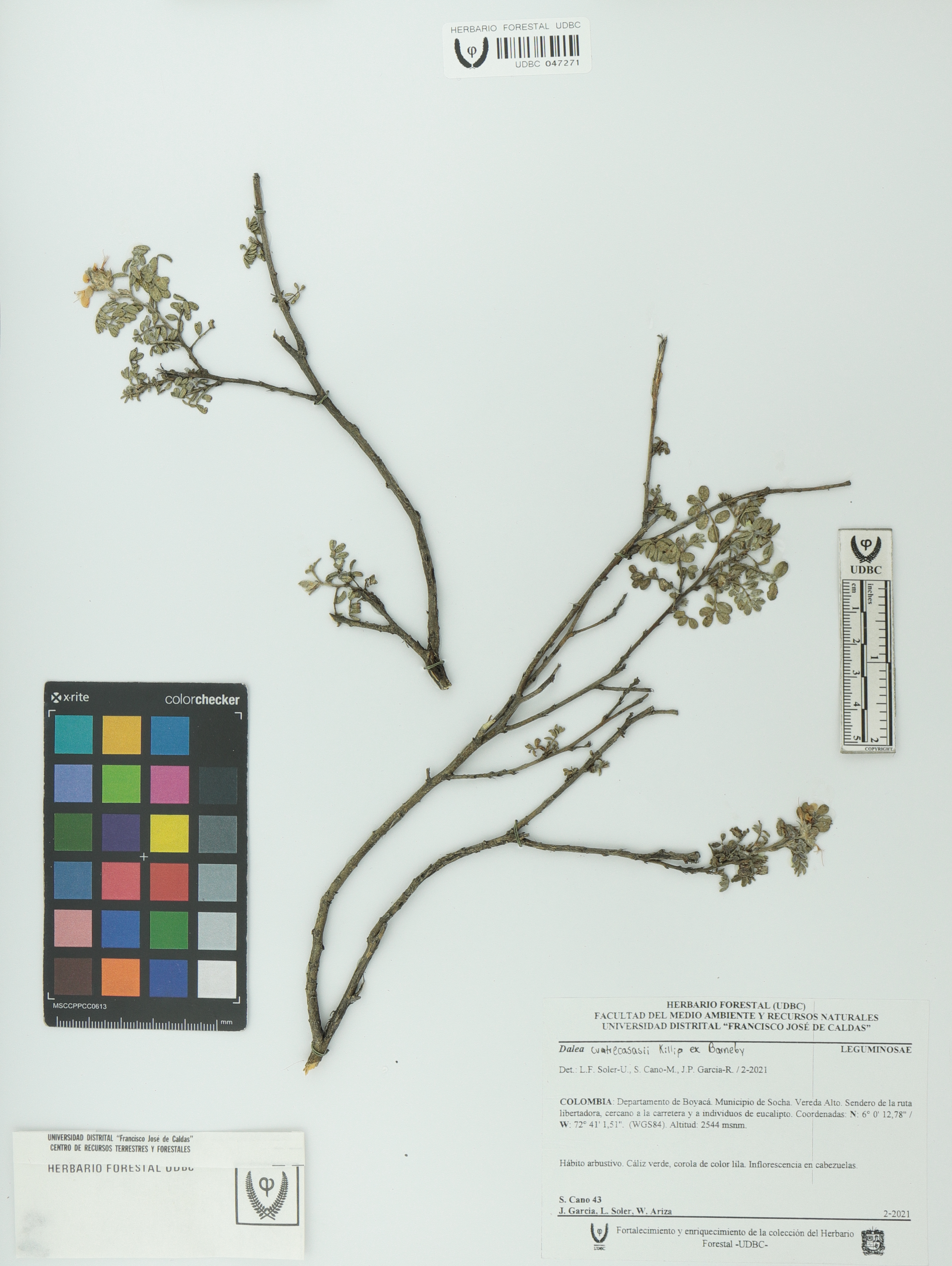 Fotografía del ejemplar Cano, S. 43, determinado como Dalea cuatrecasasii en el año 2021
