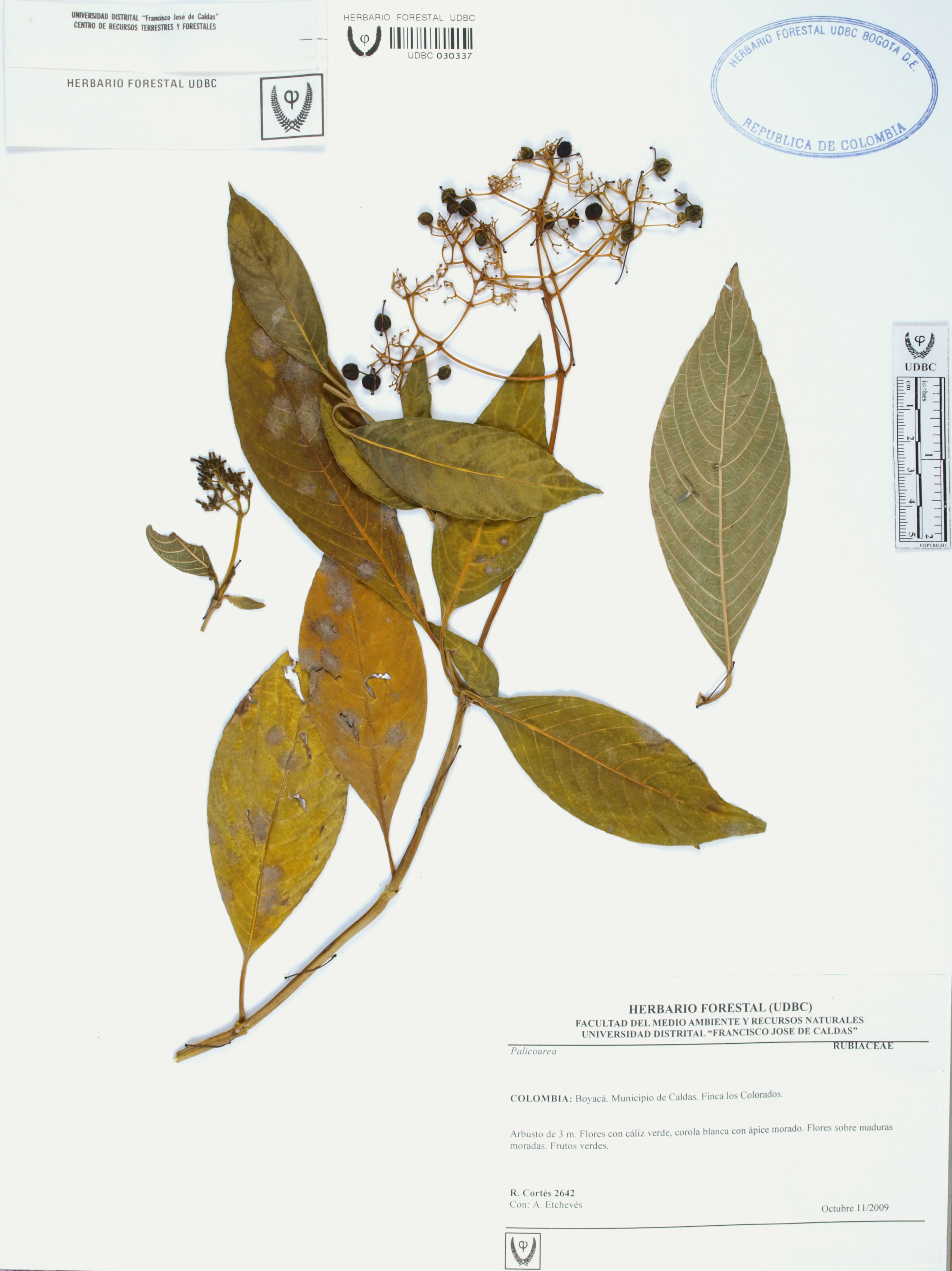 | dc.description | Fotografía del ejemplar Cortés-B., R. 2642, determinado como Palicourea paniculata en el año 2015 | |