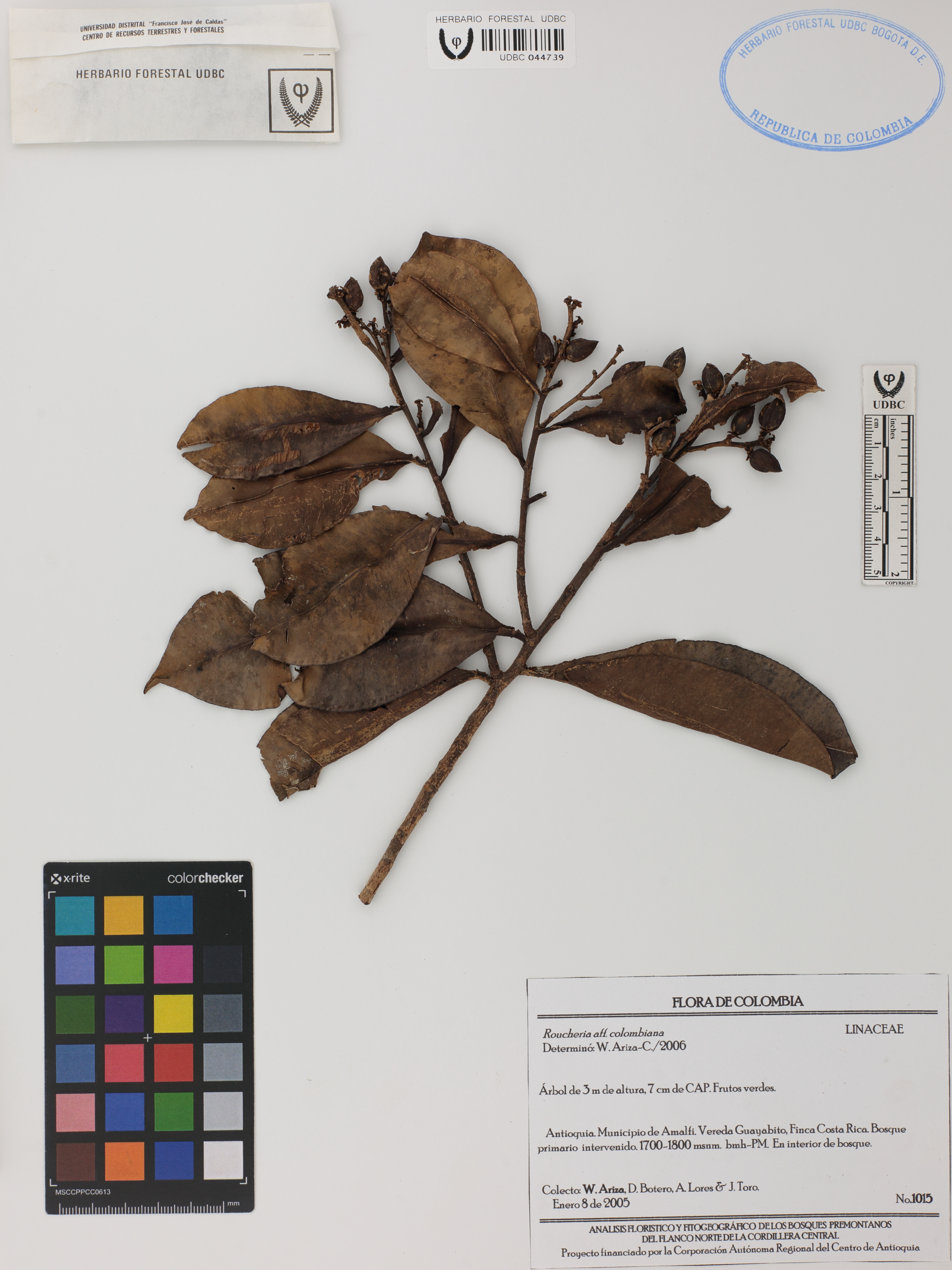 Fotografía del ejemplar Ariza, W. 1015, determinado como Roucheria columbiana en el año 2006