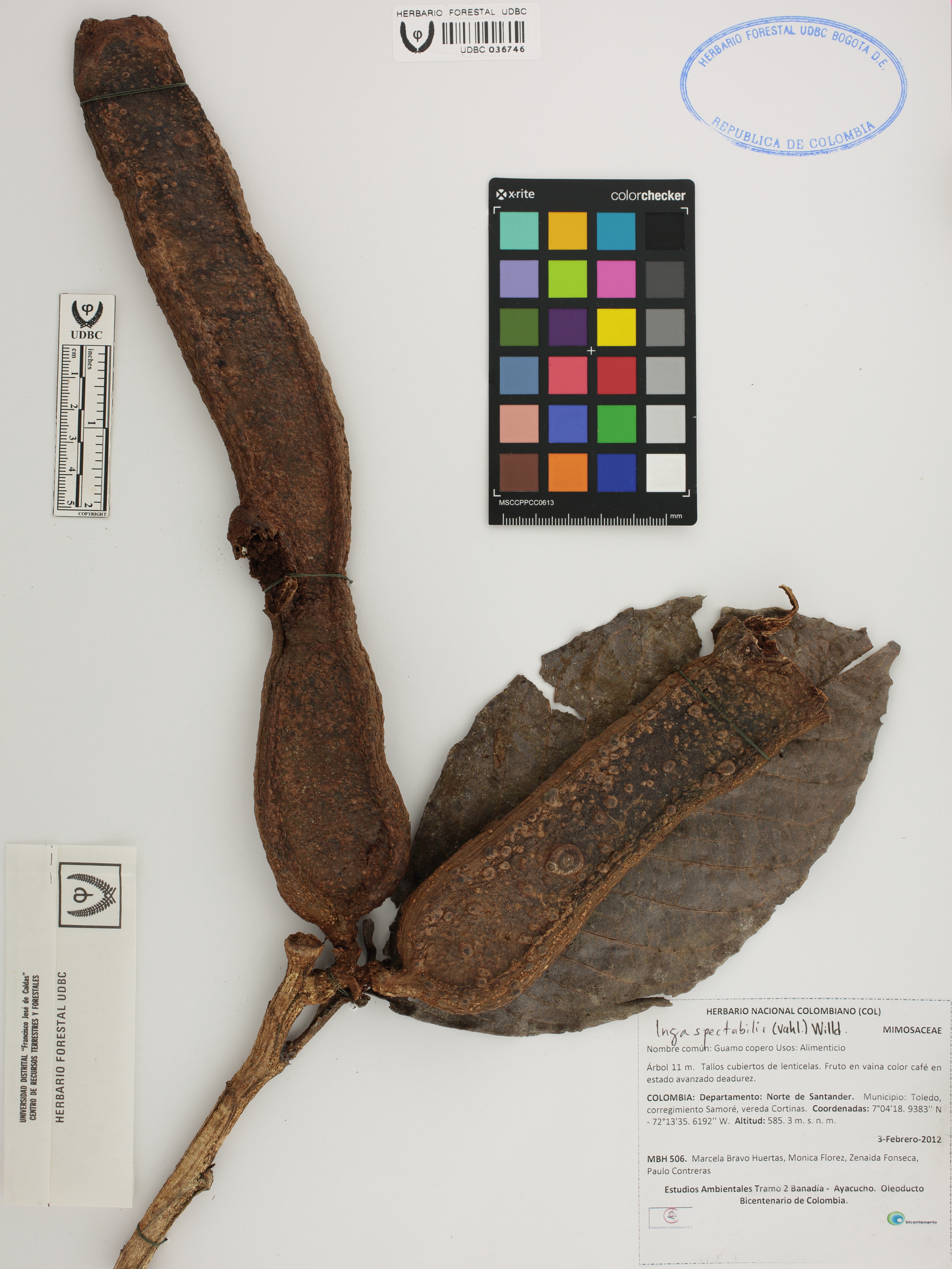 | dc.description | Fotografía del ejemplar Bravo, M. 506, determinado como Inga spectabilis | |