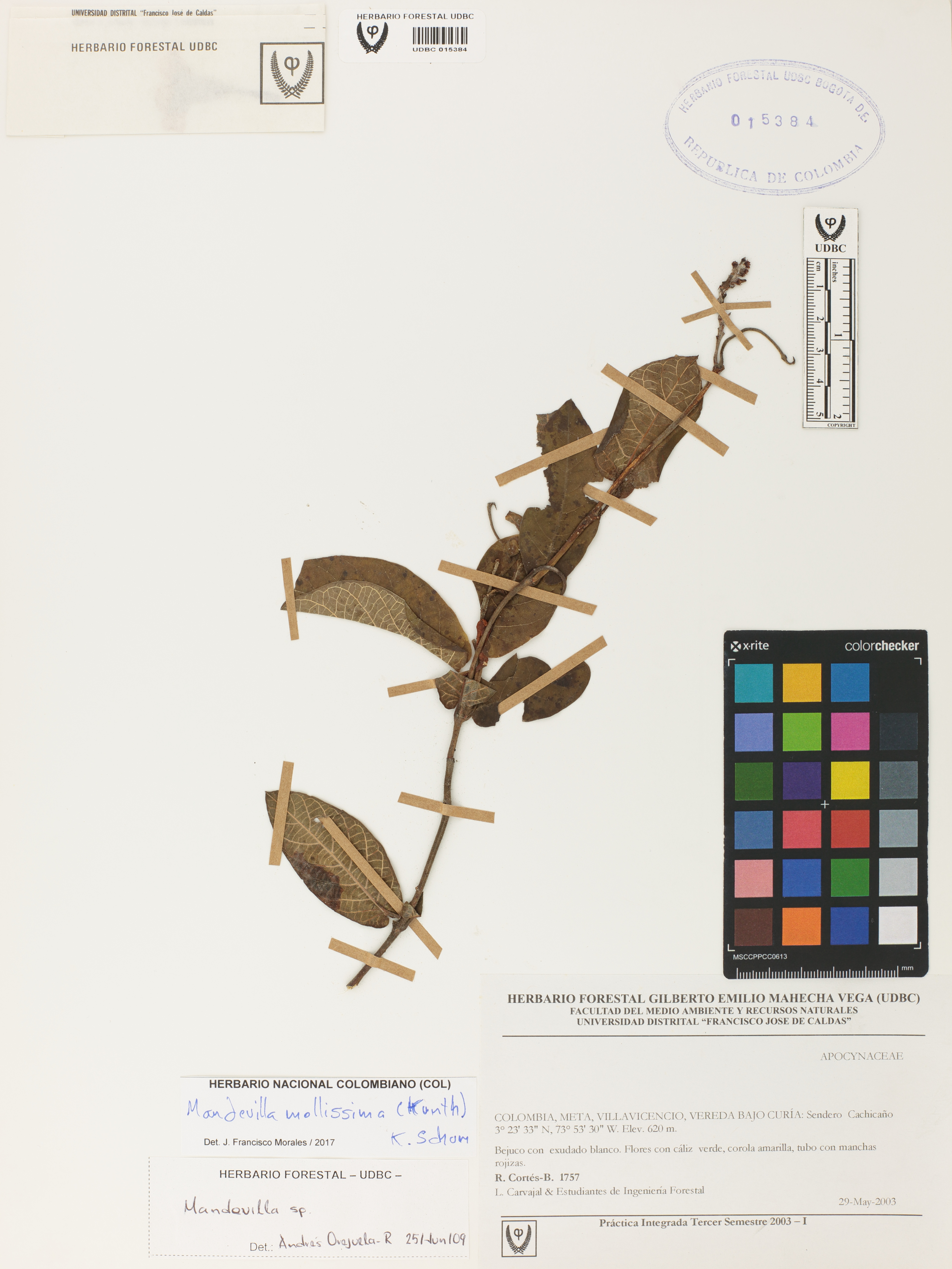 Fotografía del ejemplar Cortés-B., R. 1757, determinado como Mandevilla mollissima en el año 2017