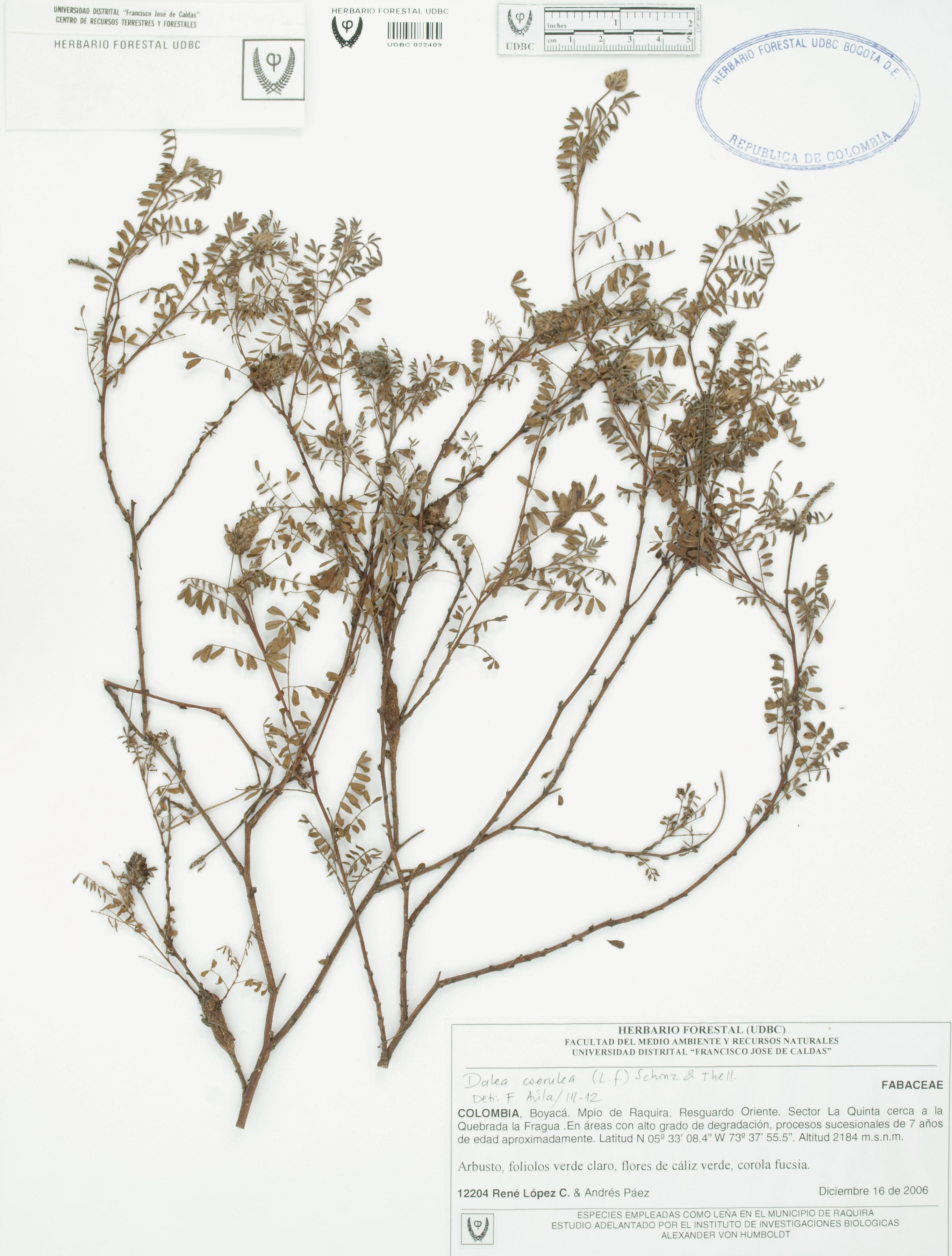 Fotografía del ejemplar López, R. 12204, determinado como Dalea coerulea en el año 2012