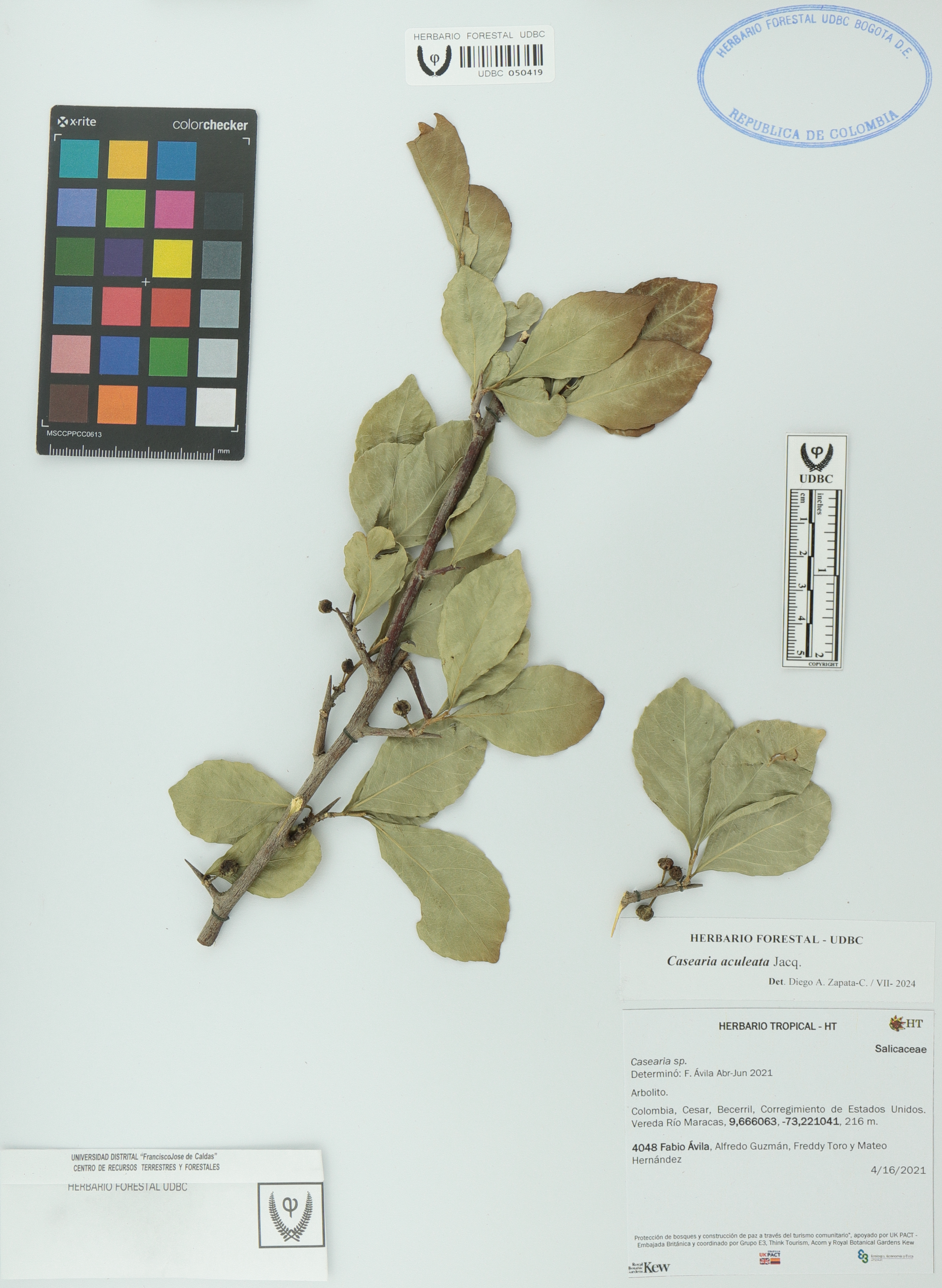 Fotografía del ejemplar Ávila, F. 4048, determinado como Casearia aculeata en el año 2024