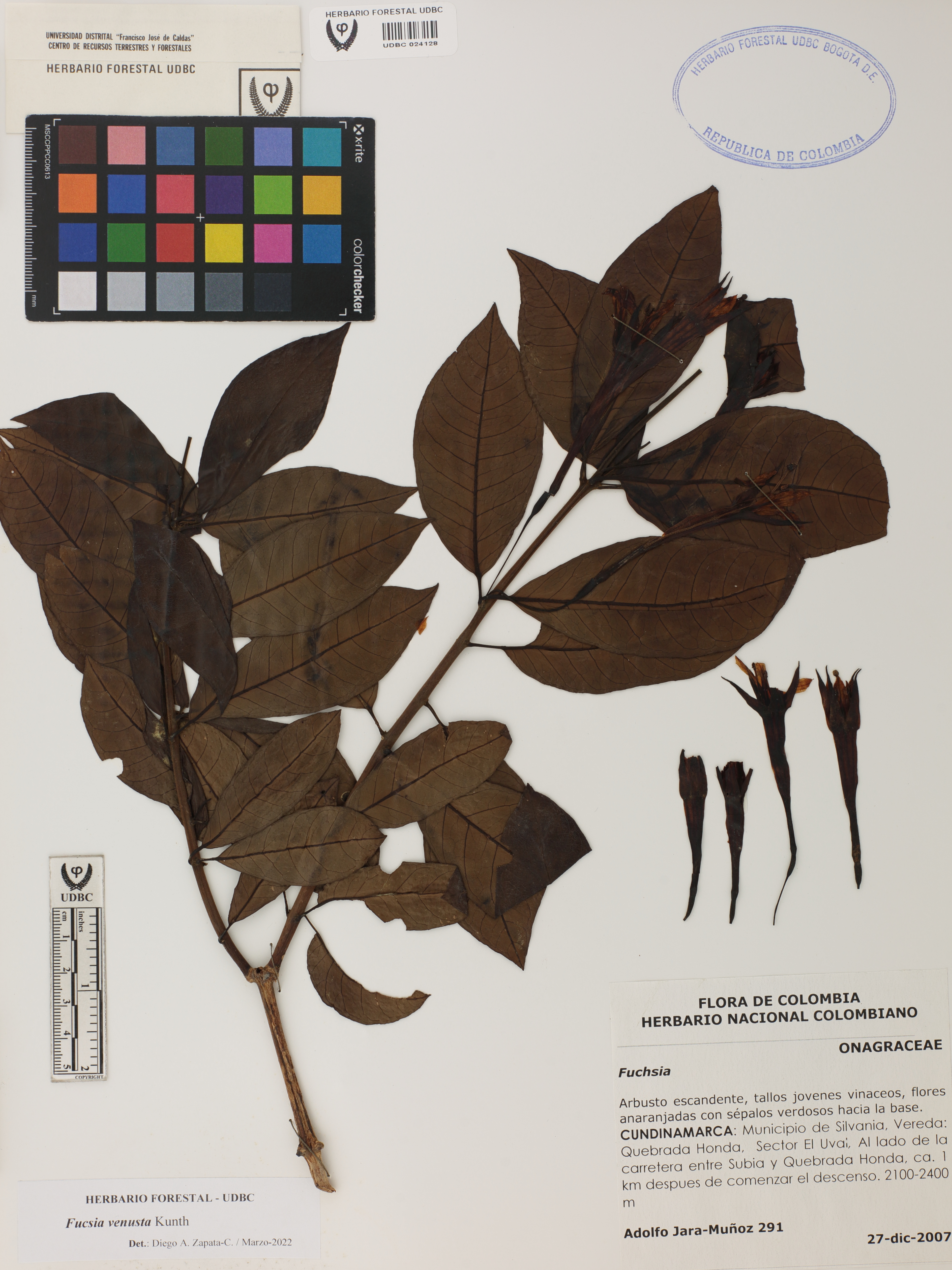 Fotografía del ejemplar Jara, A. 291, determinado como Fuchsia venusta en el año 2022