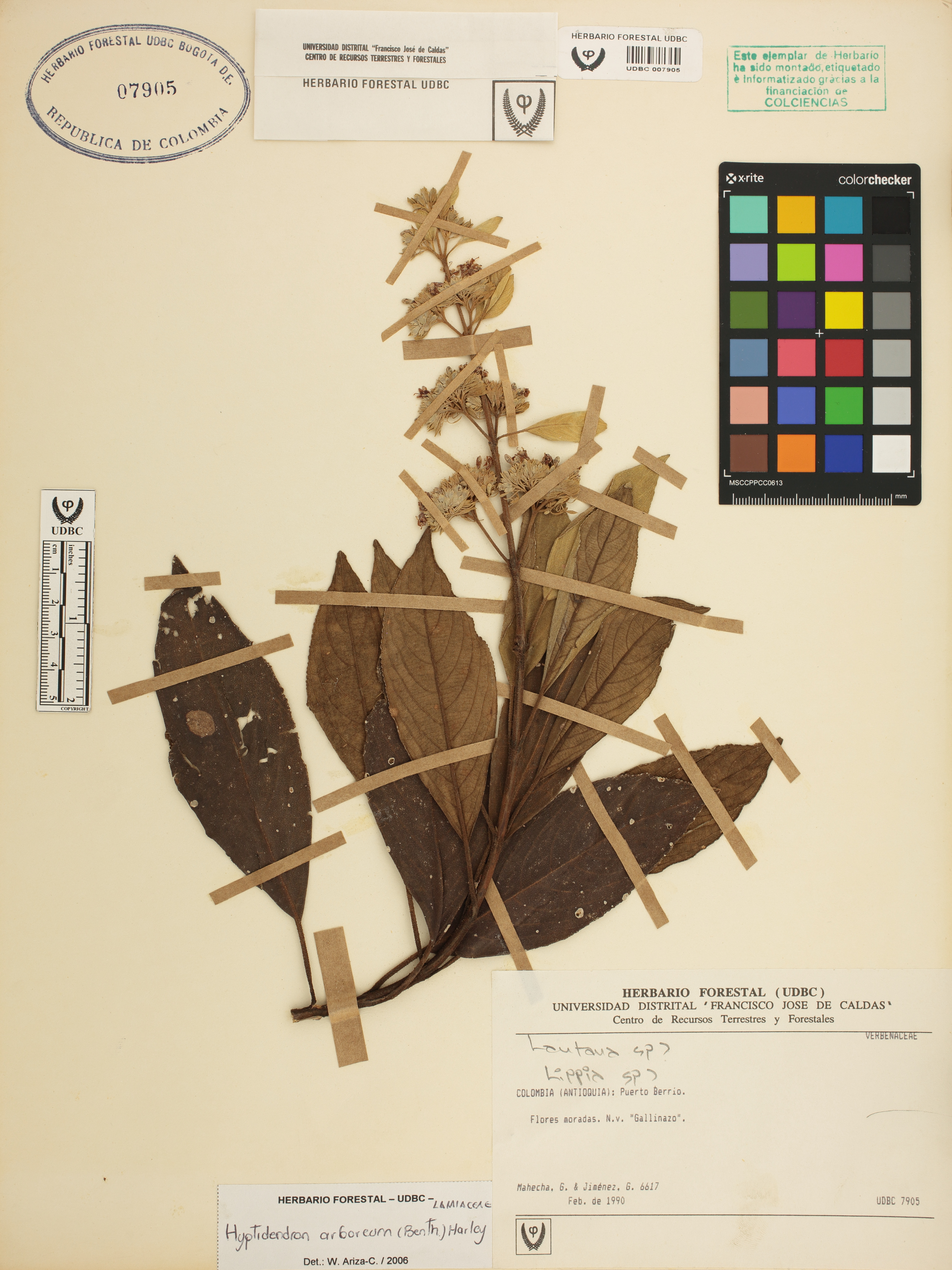 Fotografía del ejemplar Mahecha, G. 6617, determinado como Hyptidendron arboreum en el año 2006