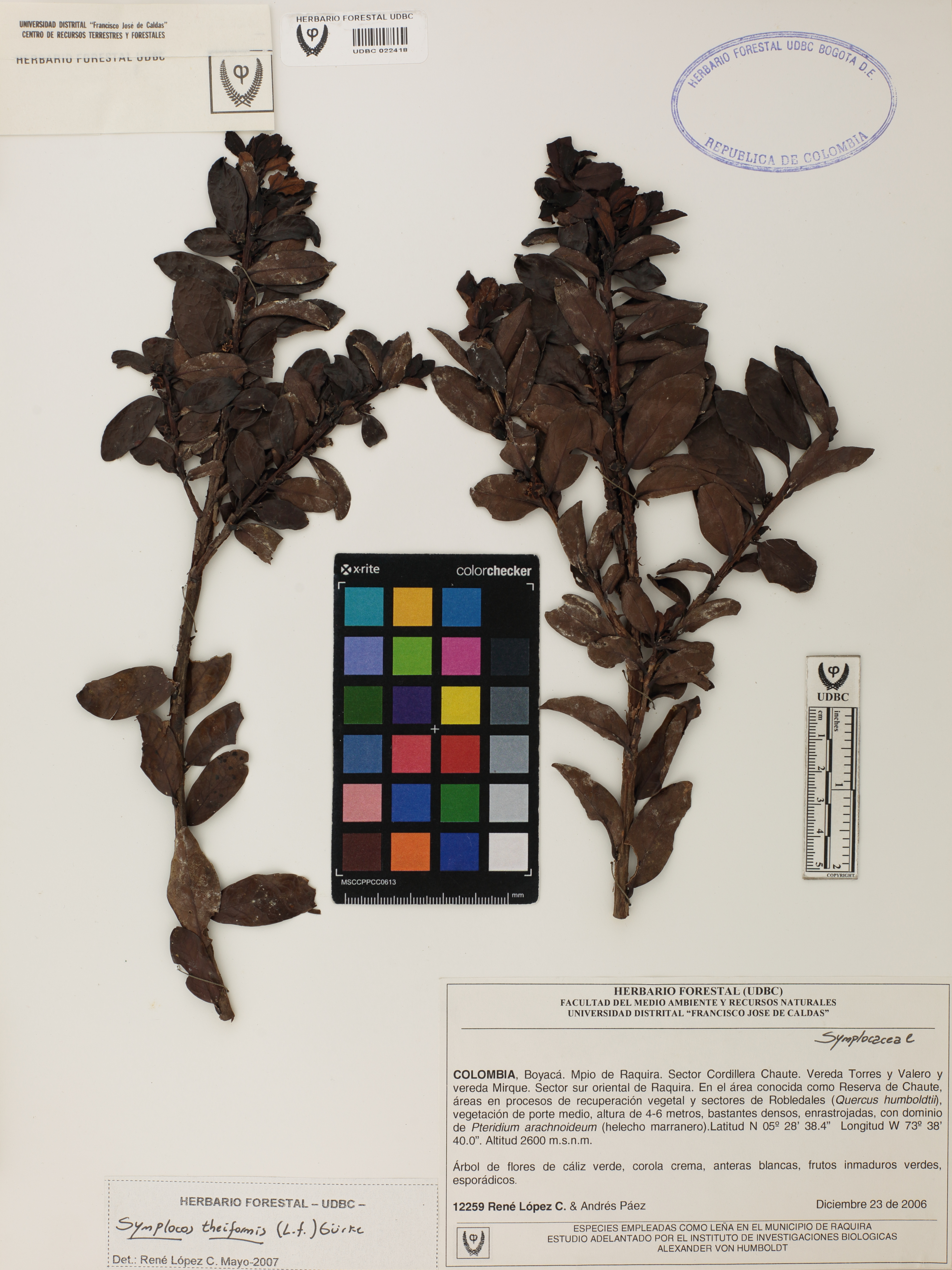 | dc.description | Fotografía del ejemplar López, R. 12259, determinado como Symplocos theiformis en el año 2007 | |