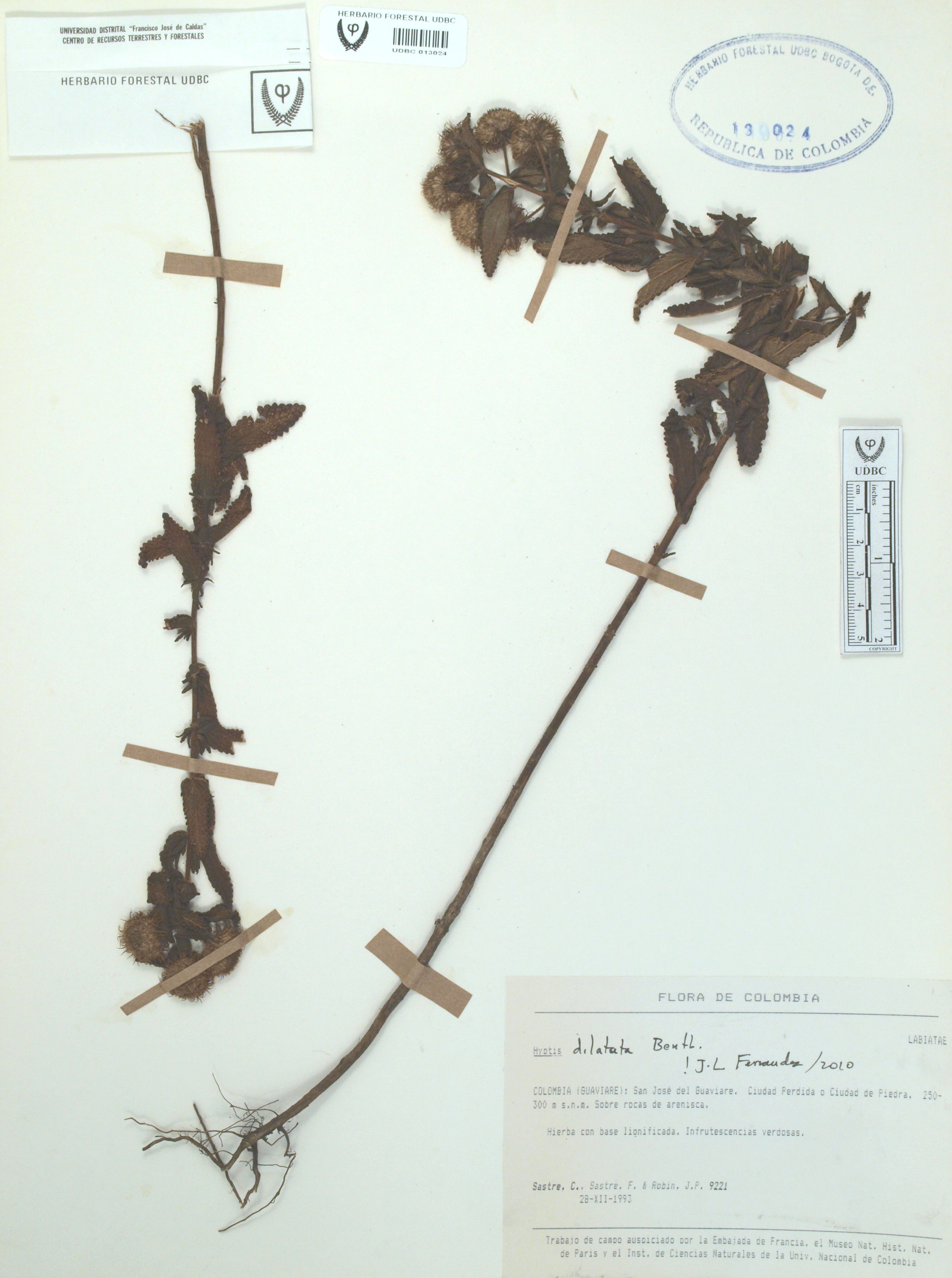 | dc.description | Fotografía del ejemplar Sastre, C. 9221, determinado como Hyptis dilatata en el año 2010 | |