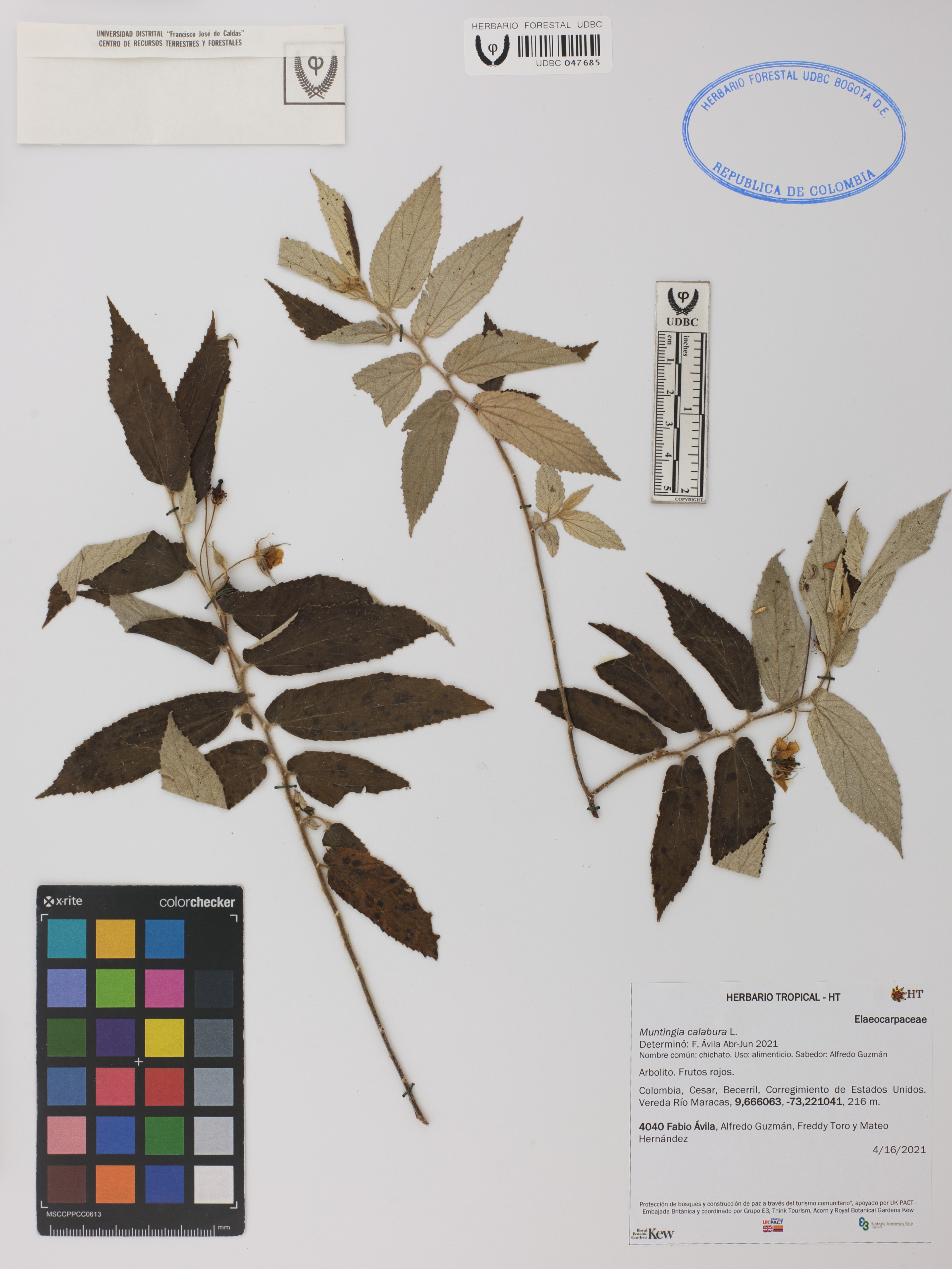 Fotografía del ejemplar Ávila, F. 4040, determinado como Muntingia calabura en el año 2021