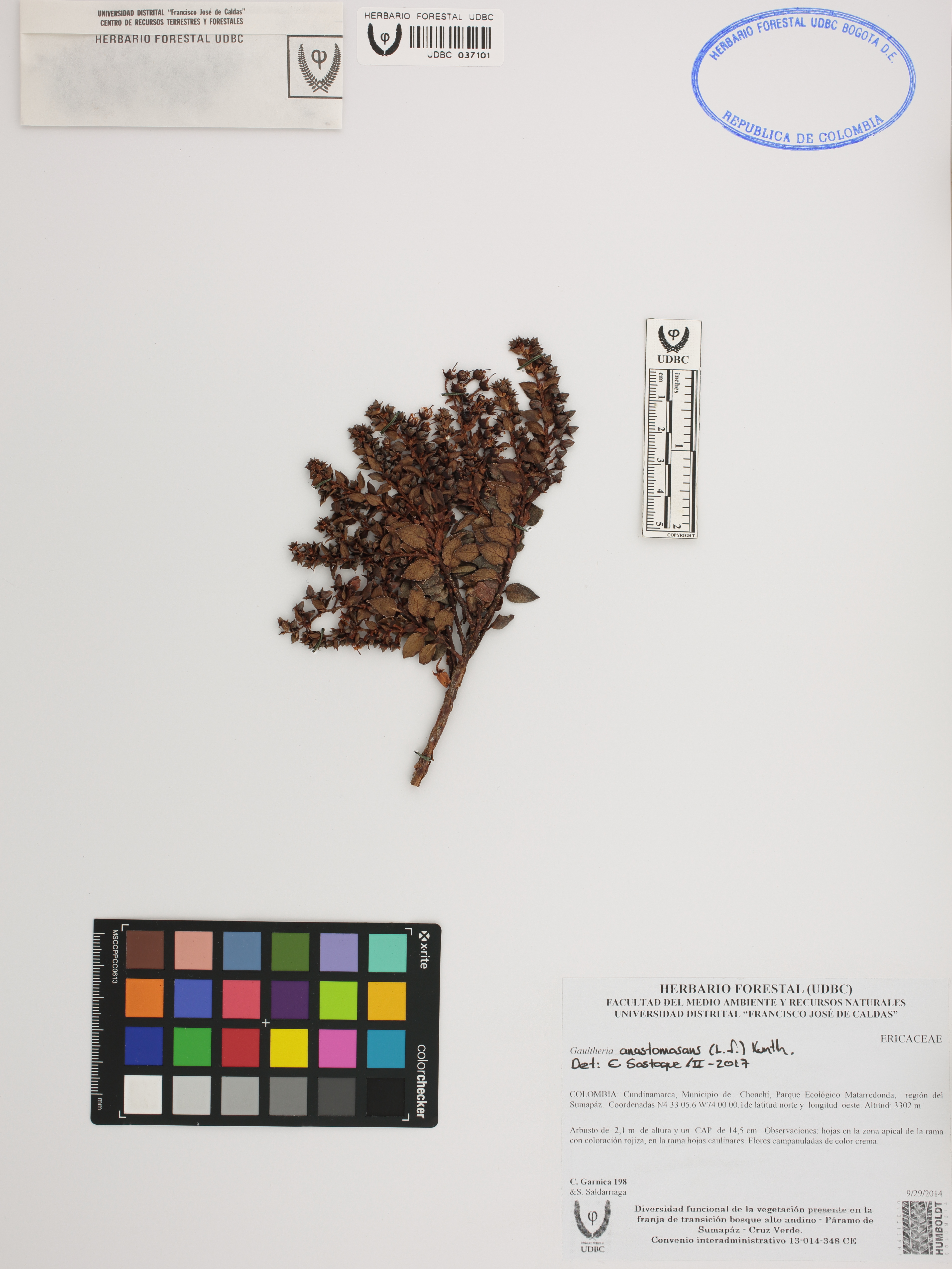 Fotografía del ejemplar Garnica, C. 198, determinado como Gaultheria anastomosans en el año 2017