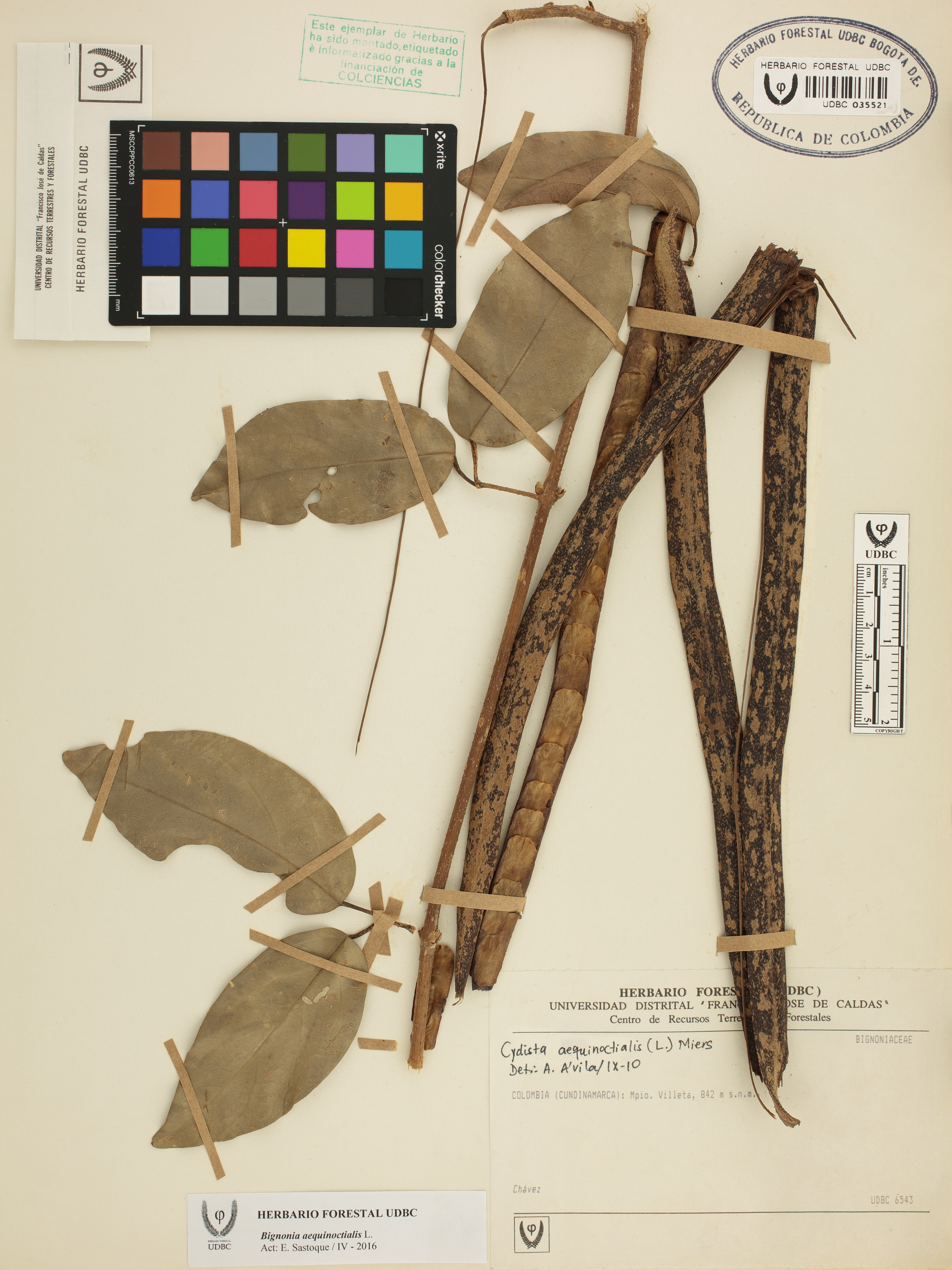 Fotografía del ejemplar Chávez,, determinado como Bignonia aequinoctialis en el año 2010